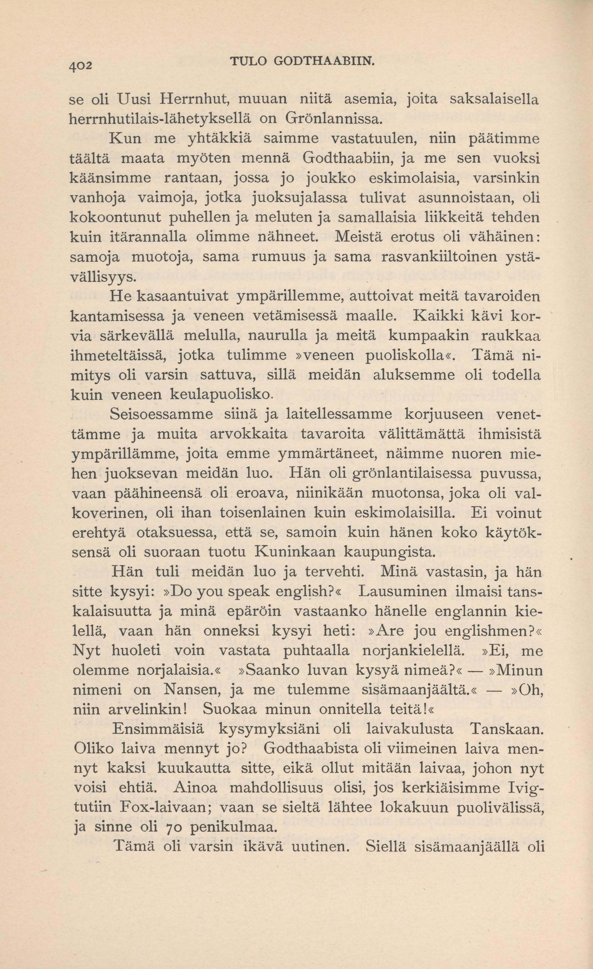 nimeni on Nansen, ja me tulemme sisämaanjäältä.« — »Oh,