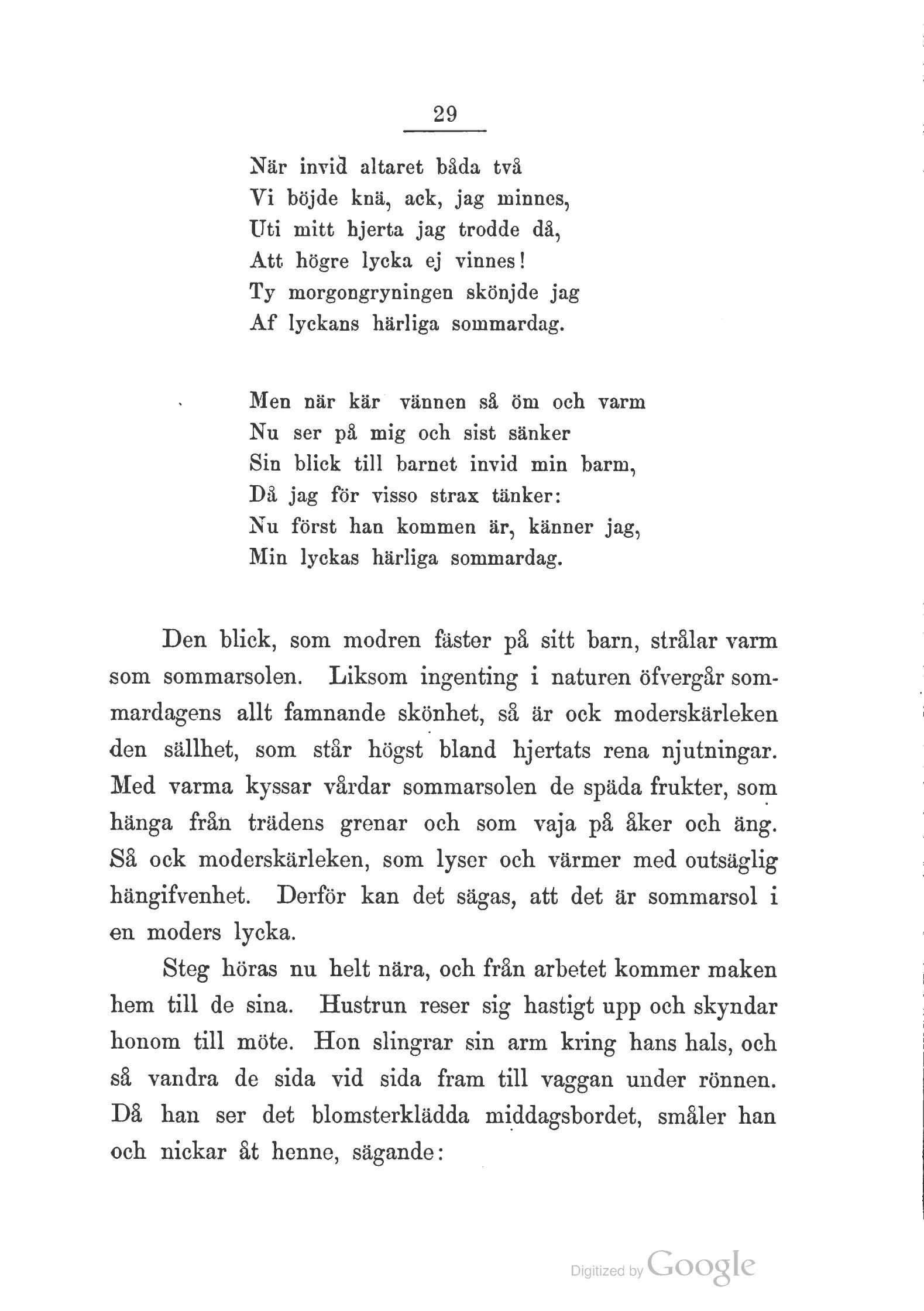 Så ock moderskärleken, som lyser och värmer med outsäglig