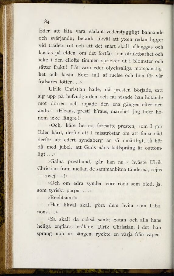 andra: »H’raus, prest! hraus, marche! Jag lider