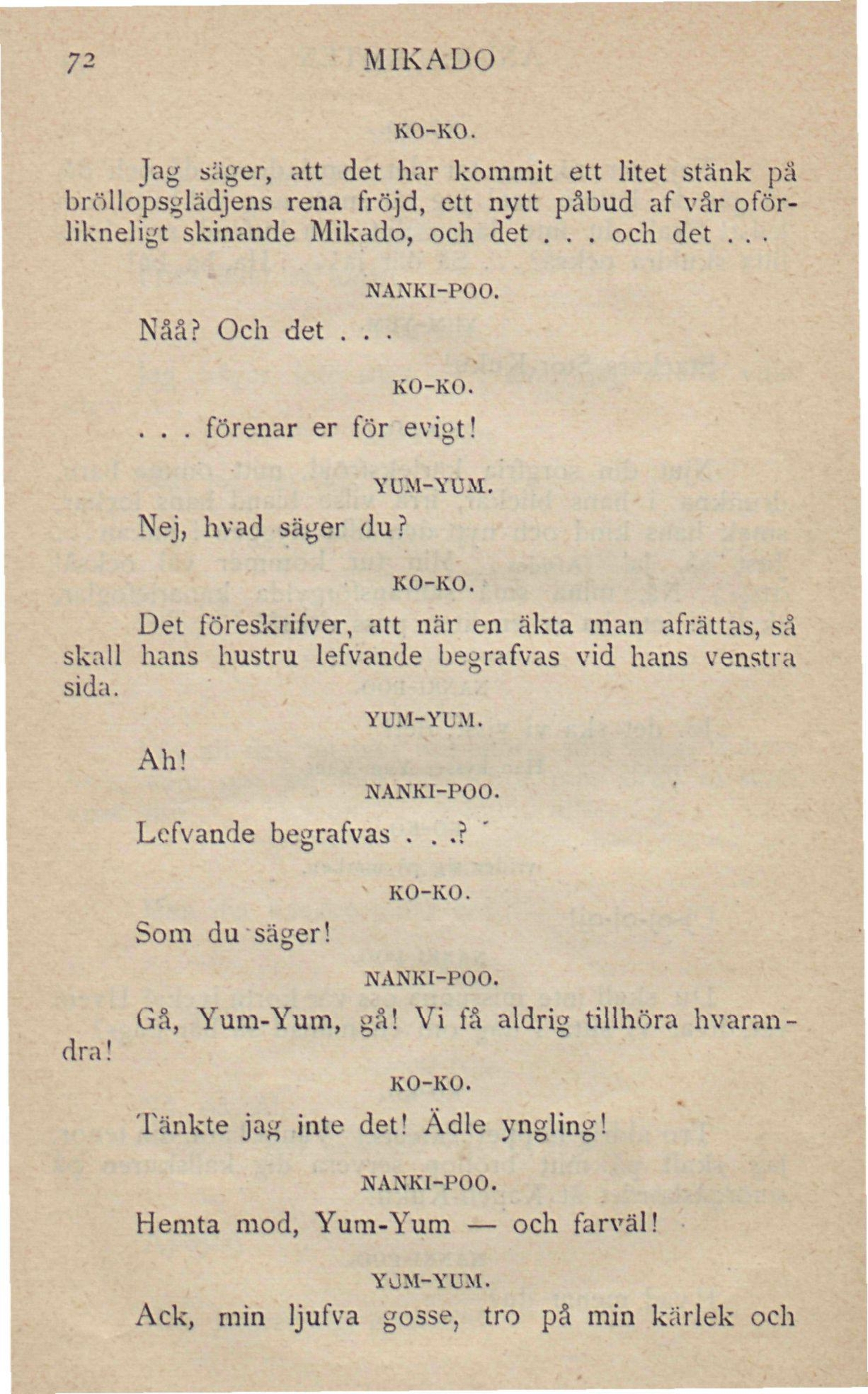 oförlikneligt skinande Mikado, och det . . . och det . . .