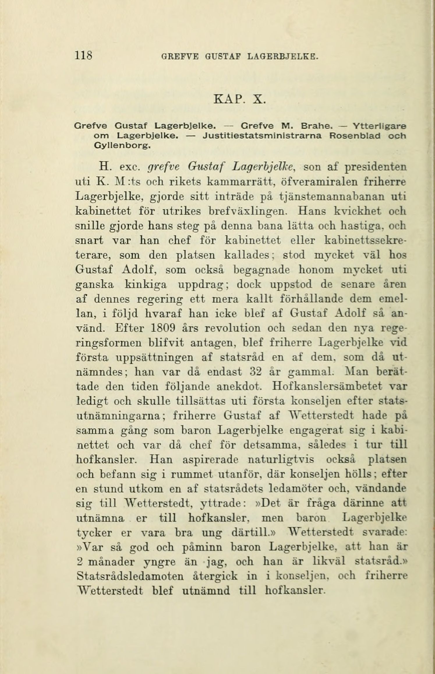 Grefve Gustaf Lagerbjelke. — Grefve M. Brahe. — Ytterligare