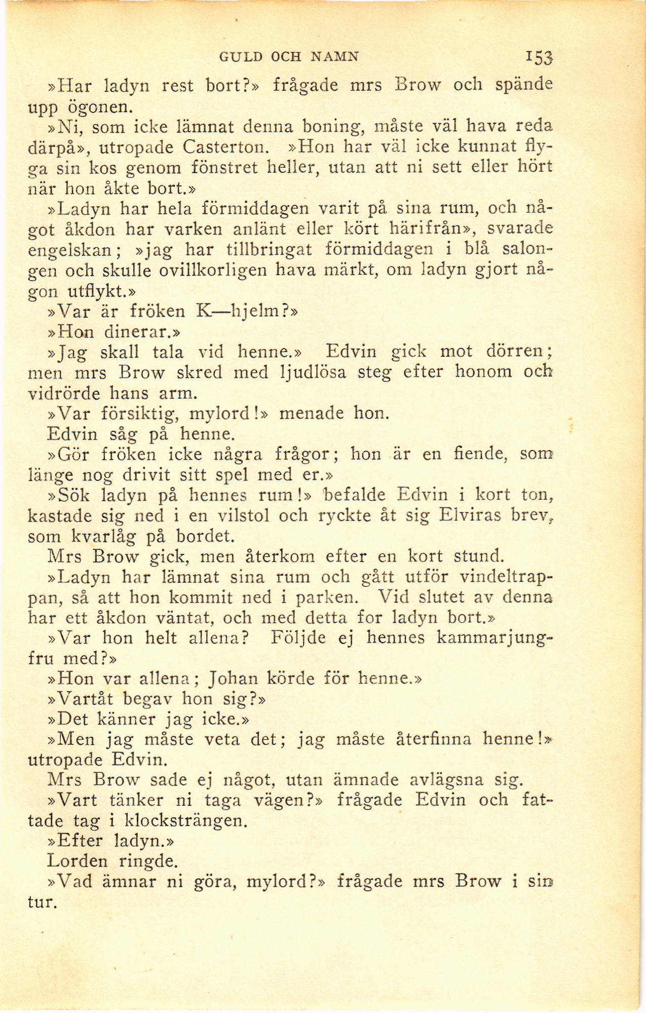 »Sök ladyn på hennes rum!» befalde Edvin i kort ton,