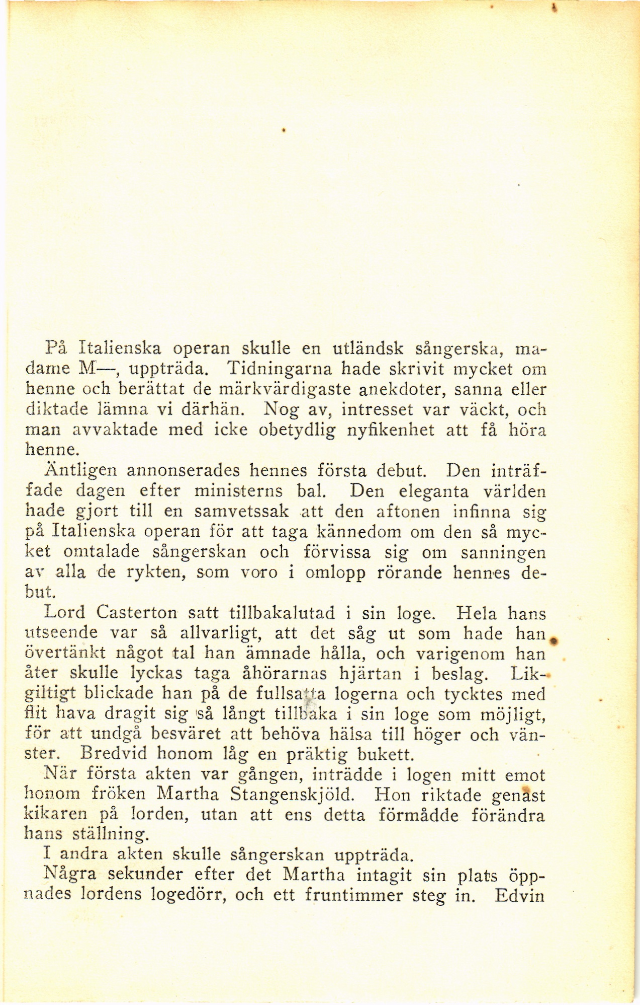 öppnades lordens logedörr, och ett fruntimmer steg in. Edvin