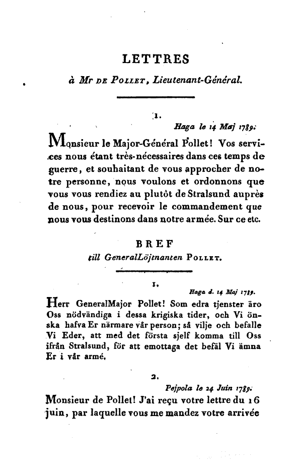 Herr GeneralMajor Pollet! Som edra tjenster äro