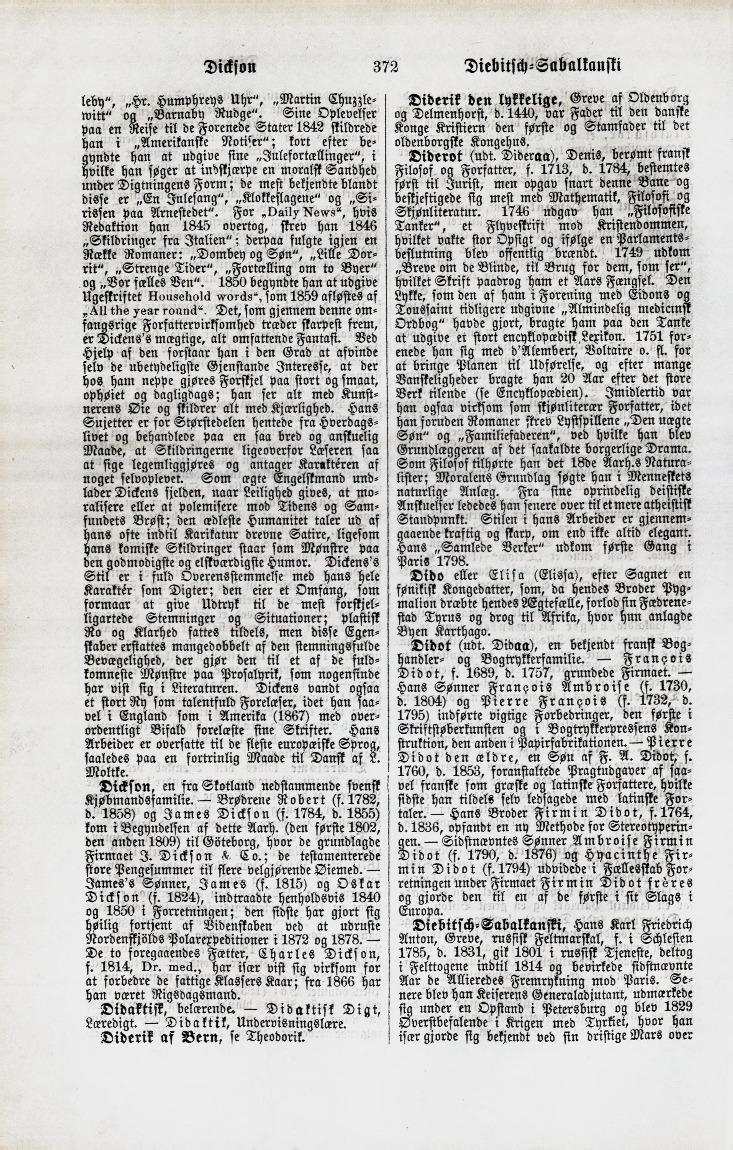 Full resolution (JPEG) - On this page / på denna sida - Dickens, Charles - Dickson. — Robert og James Dickson. — J. Dickson & Co. — James og Oskar Dickson. — Charles Dickson - Didaktisk. — Didaktisk Digt. — Didaktik - Diderik af Bern, se Theodorik - Diderik den lykkelige - Diderot, Denis - Dido eller Elisa (Elissa) - Didot. — François Didot. — François Ambroise og Pierre François Didot. — Pierre Didot den ældre. — Firmin Didot. — Ambroise Firmin Didot og Hyacinthe firmin Didot. — Firmin Didot frères - Diebitsch-Sabalkanski, Hans Karl Friedrich Anton, Greve