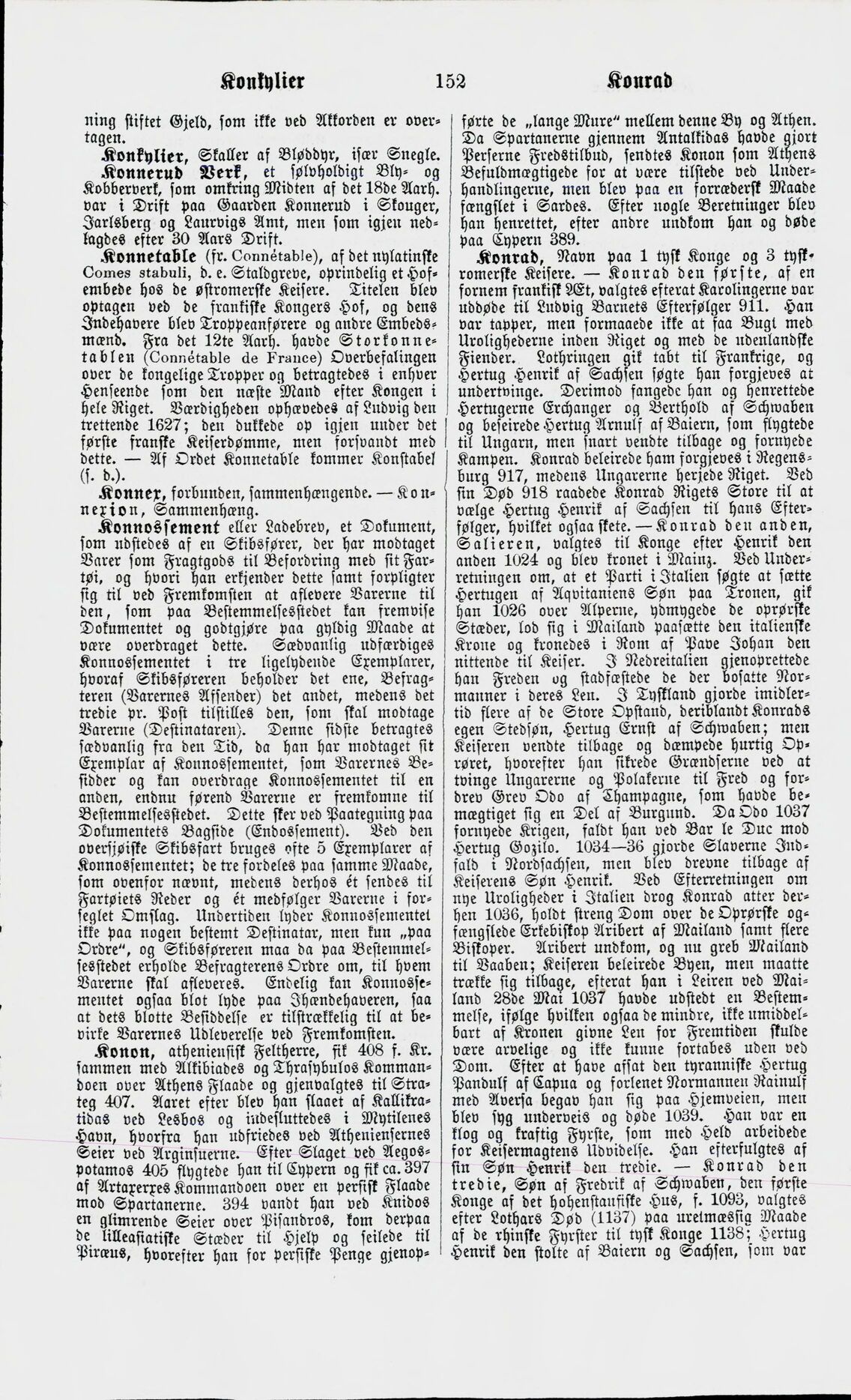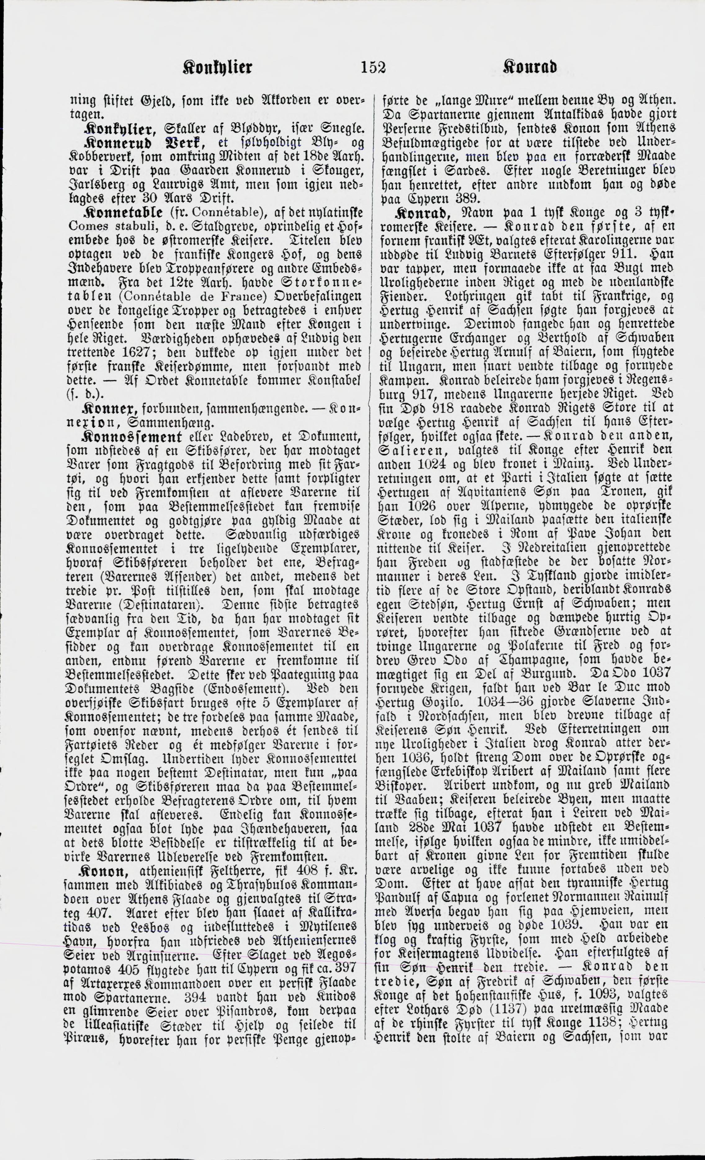 Full resolution (JPEG) - On this page / på denna sida - Konkurs - Konkylier - Konnerud Verk - Konnetable. — Storkonnetablen - Konner. — Konnexion - Konnossement eller Ladebrev - Konon - Konrad (Konge og Keisere). — Konrad den første. — Konrad den anden, Salieren. — Konrad den tredie. — Konrad den fjerde
