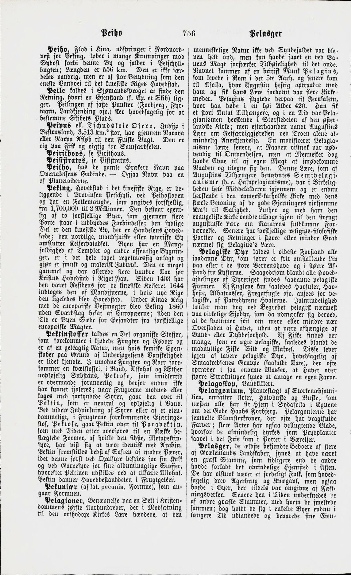 Full resolution (JPEG) - On this page / på denna sida - Peiho - Peile - Peipus ell. Tschudskoie Osero - Peirithoos, se Pirithous - Peisistratos, se Pisistratus - Peitho - Peking - Pektinstoffer. — Pektose. — Pektin. — Parapektin - Pekuniær - Pelagianer. — Pelagius. — Semipelagianisme - Pelagiske Dyr - Pelagoskop - Pelargonium - Pelasger