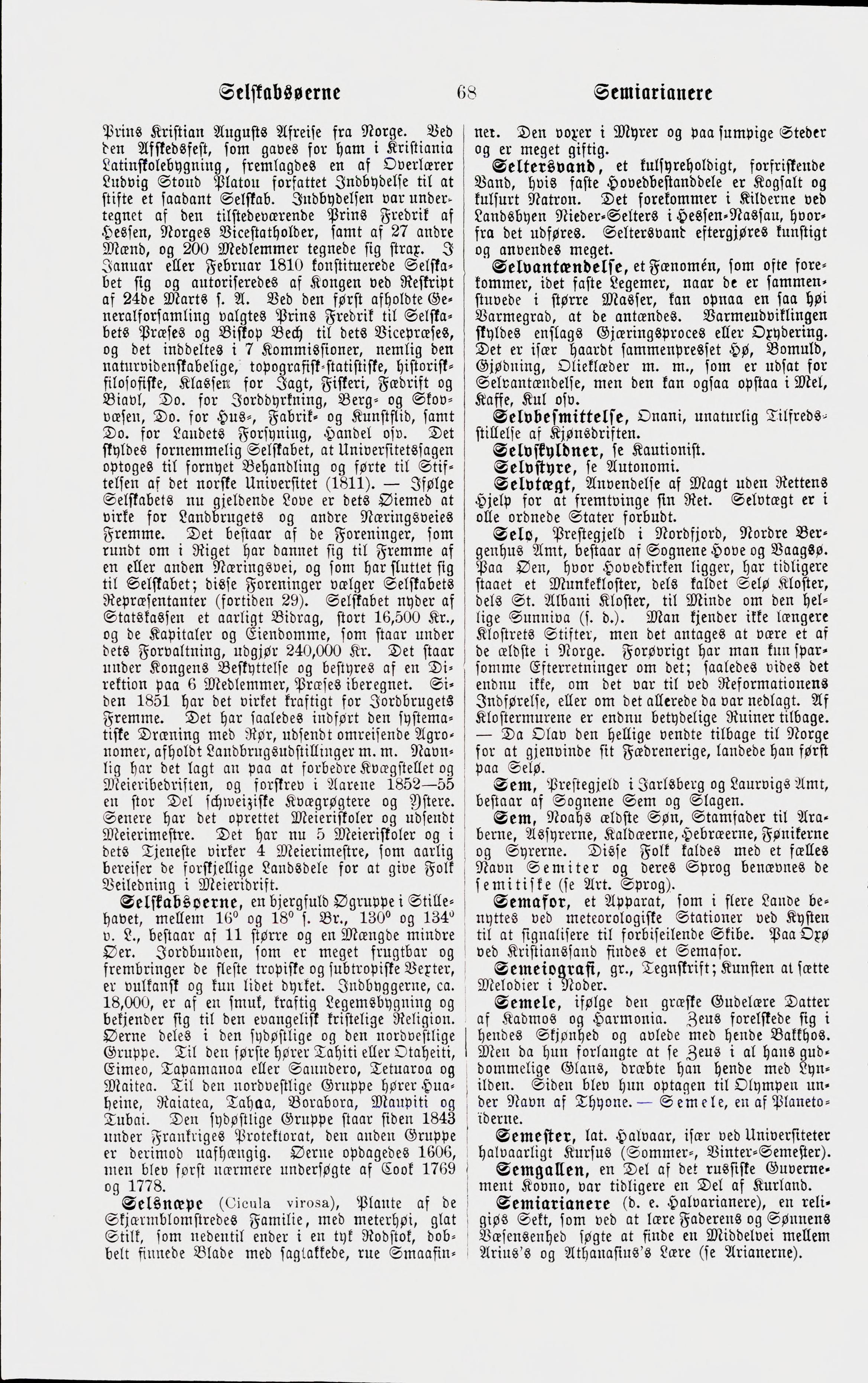 Full resolution (JPEG) - On this page / på denna sida - Selskabet for Norges Vel, det kongelige - Selskabsøerne - Selsnæpe - Seltersvand - Selvantændelse - Selvbesmittelse, Onani - Selvskyldner, se Kautionist - Selvstyre, se Autonomi - Selvtægt - Selø. — Selø Kloster, dels St. Albani Kloster - Sem (Prestegjeld) - Sem (Noahs Søn). — Semiter. — De semitiske Sprog (se Art. Sprog) - Semafor - Semeiografi - Semele - Semester - Semgallen - Semiarianere