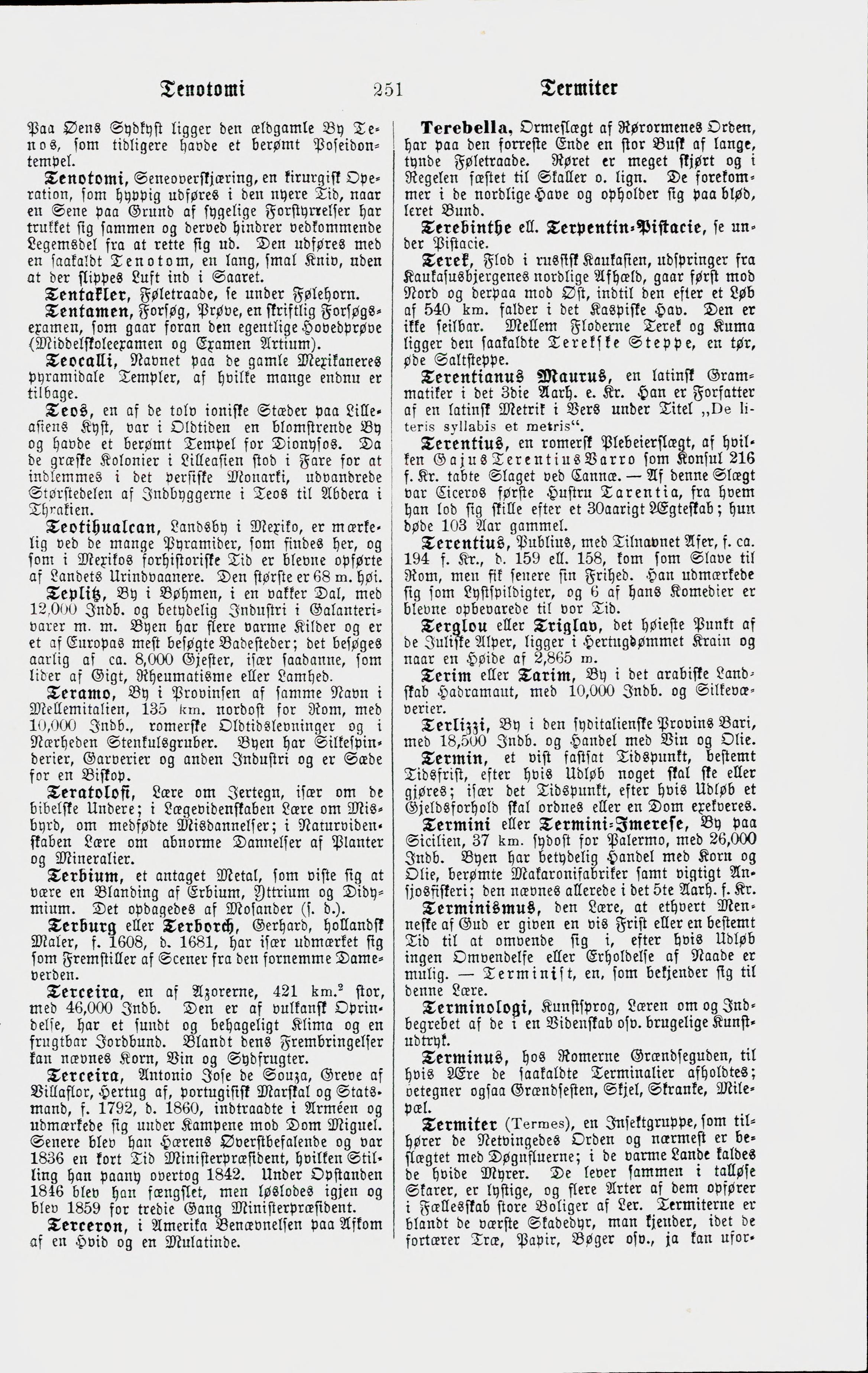Full resolution (JPEG) - On this page / på denna sida - Tenos, nu Tinos (Ø). — Tenos (By) - Tenotomi. — Tenotom - Tentakler, Føletraade, se under Følehorn - Tentamen - Teocalli - Teos - Teotihualcan - Teplitz - Teramo - Teratolofi - Terbium - Terburg eller Terborch, Gerhard - Terceira - Terceira, Antonio Jose de Souza, Hertug af - Terceron - Terebella - Terebinthe ell. Terpentin-Pistacie, se under Pistacie - Terek. — Den Teretske Steppe - Terentianus Maurus - Terentius. — Gajus Terentius Varro. — Tarentia (Ciceros Hustru) - Terentius, Publius, med Tilnavnet Afer - Terglou eller Triglav - Terim eller Tarim - Terlizzi - Termin - Termini eller Termini-Imerese - Terminismus. — Terminist - Terminologi - Terminus - Termiter