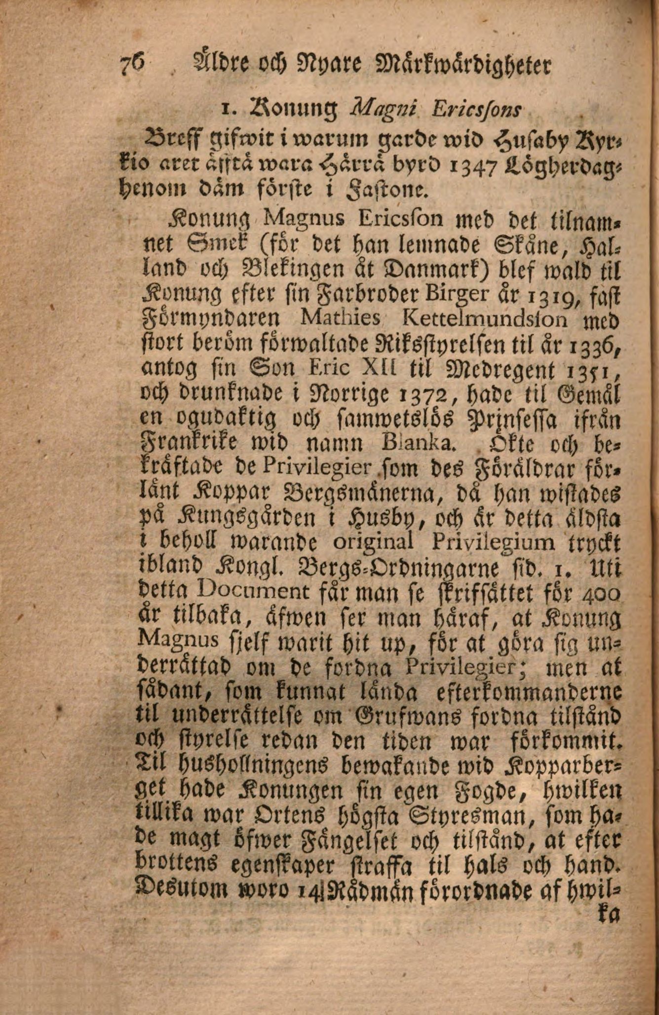 ibland Kongl. Bergs-Ordnin arne sid. I. Utt