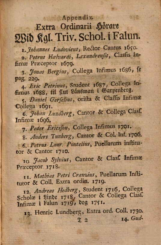 13. Henric Lundberg, Extra ord. Coll. 1730.