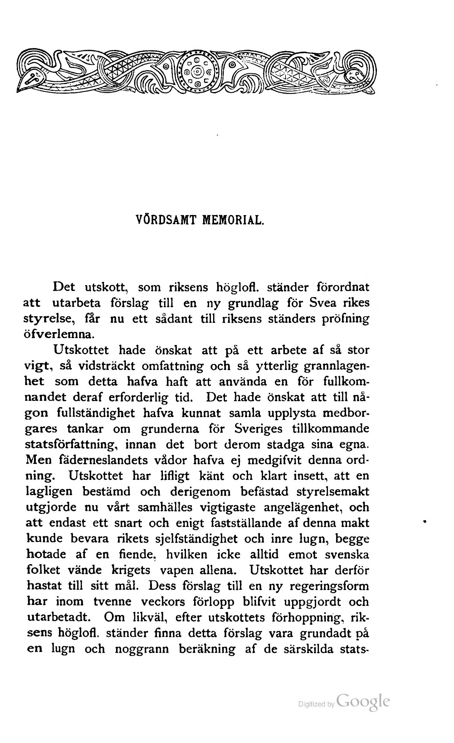 styrelse, far nu ett sådant till riksens ständers pröfning