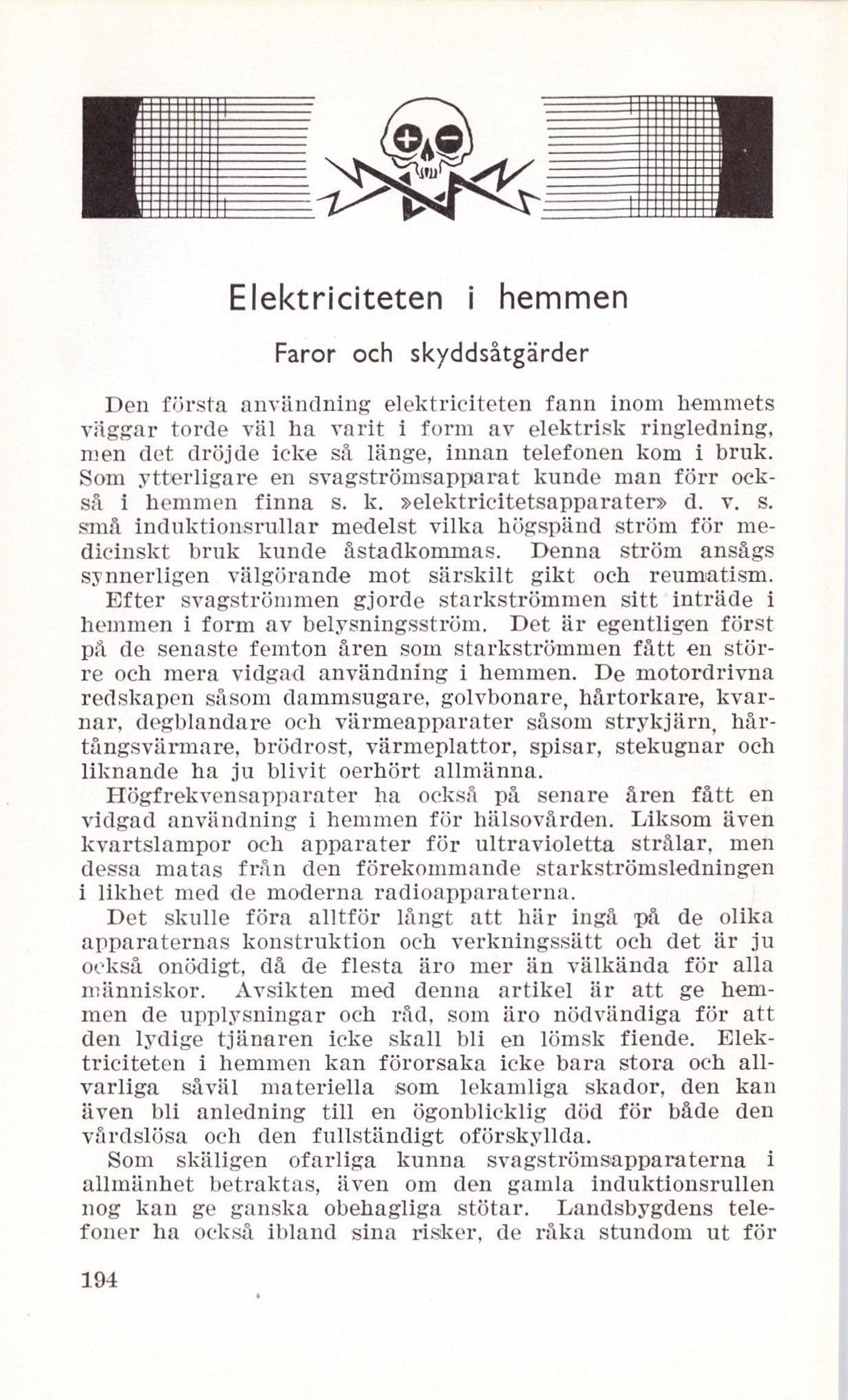 också i hemmen finna s. k. »elektricitetsapparater» d. v. s.