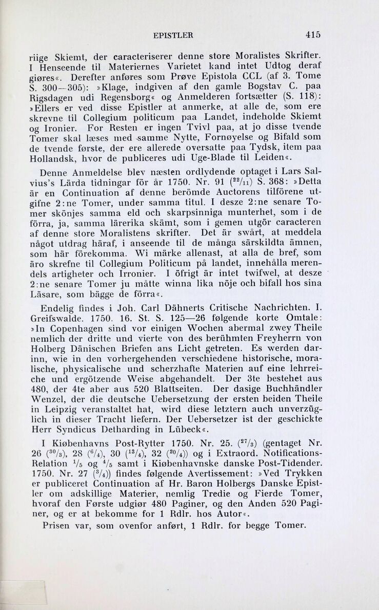 publiceret Continuation af Hr. Baron Holbergs Danske Epist-
