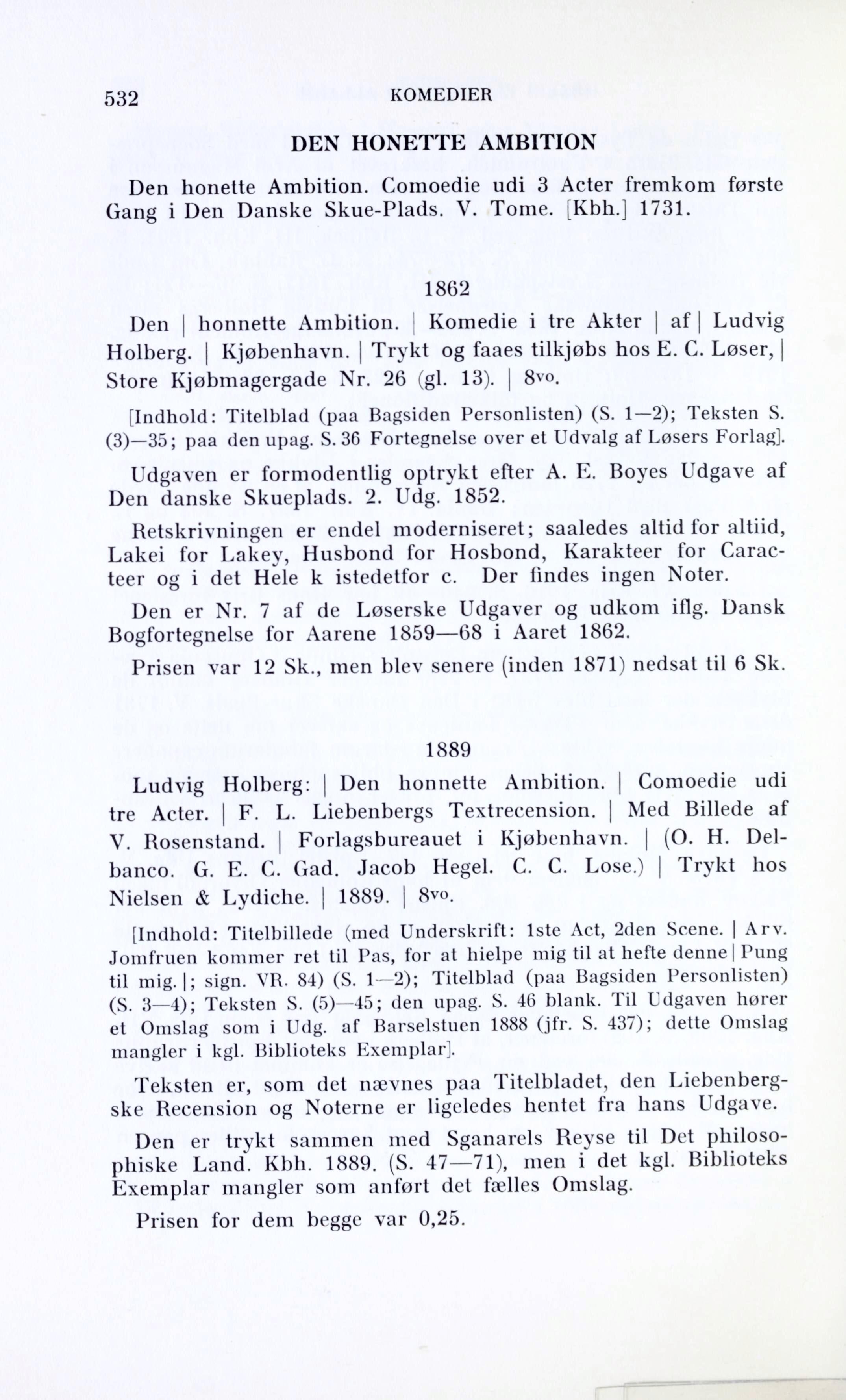 Ludvig Holberg: | Den honnette Ambition. | Comoedie udi