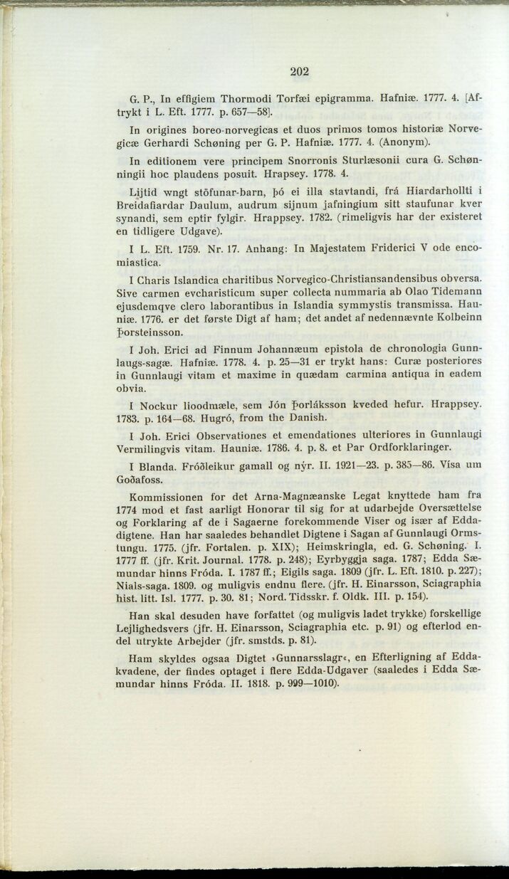 G. P., In effigiem Thormodi Torfæi epigramma. Hafniæ. 1777. 4. [Af-