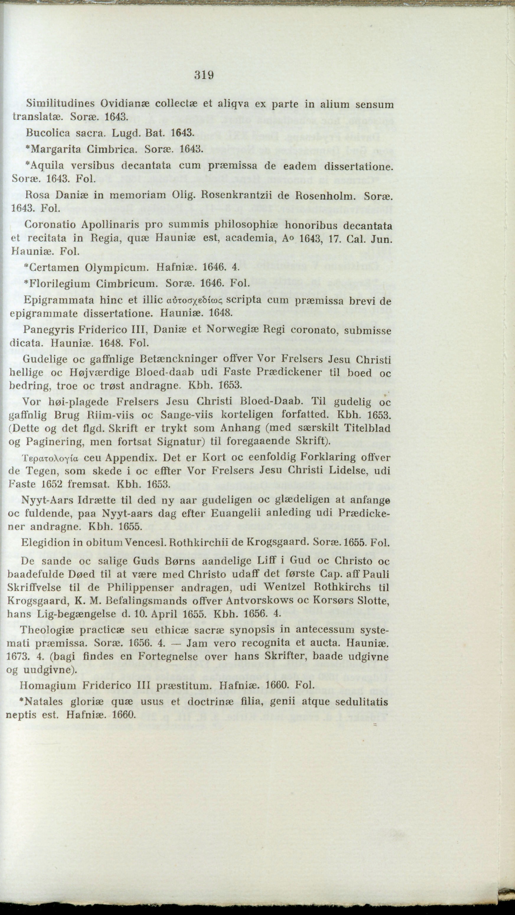 1673. 4. (bagi findes en Fortegnelse over hans Skrifter, baade udgivne