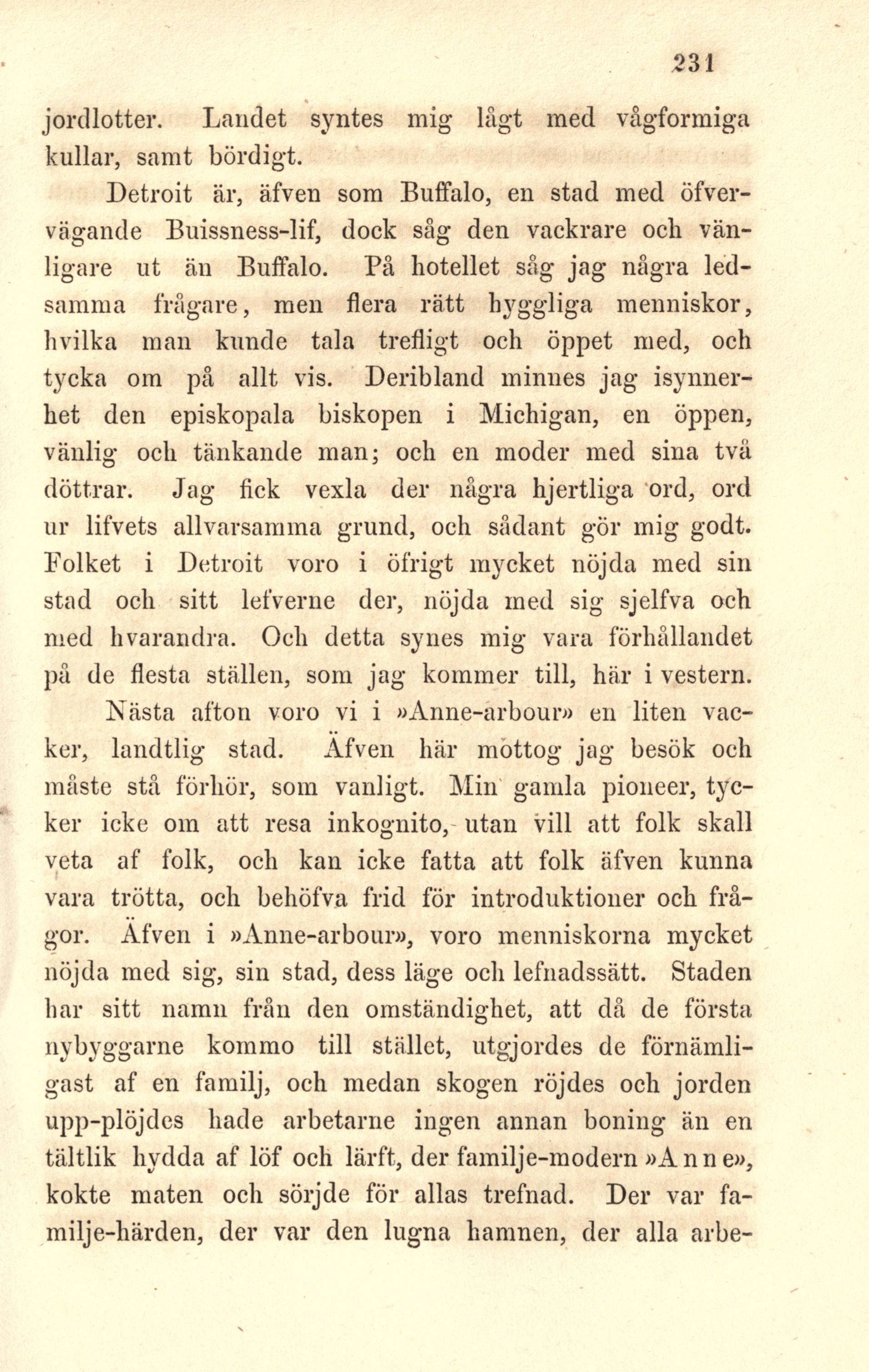 frågor. Äfven i »Anne-arbour», voro menniskorna mycket