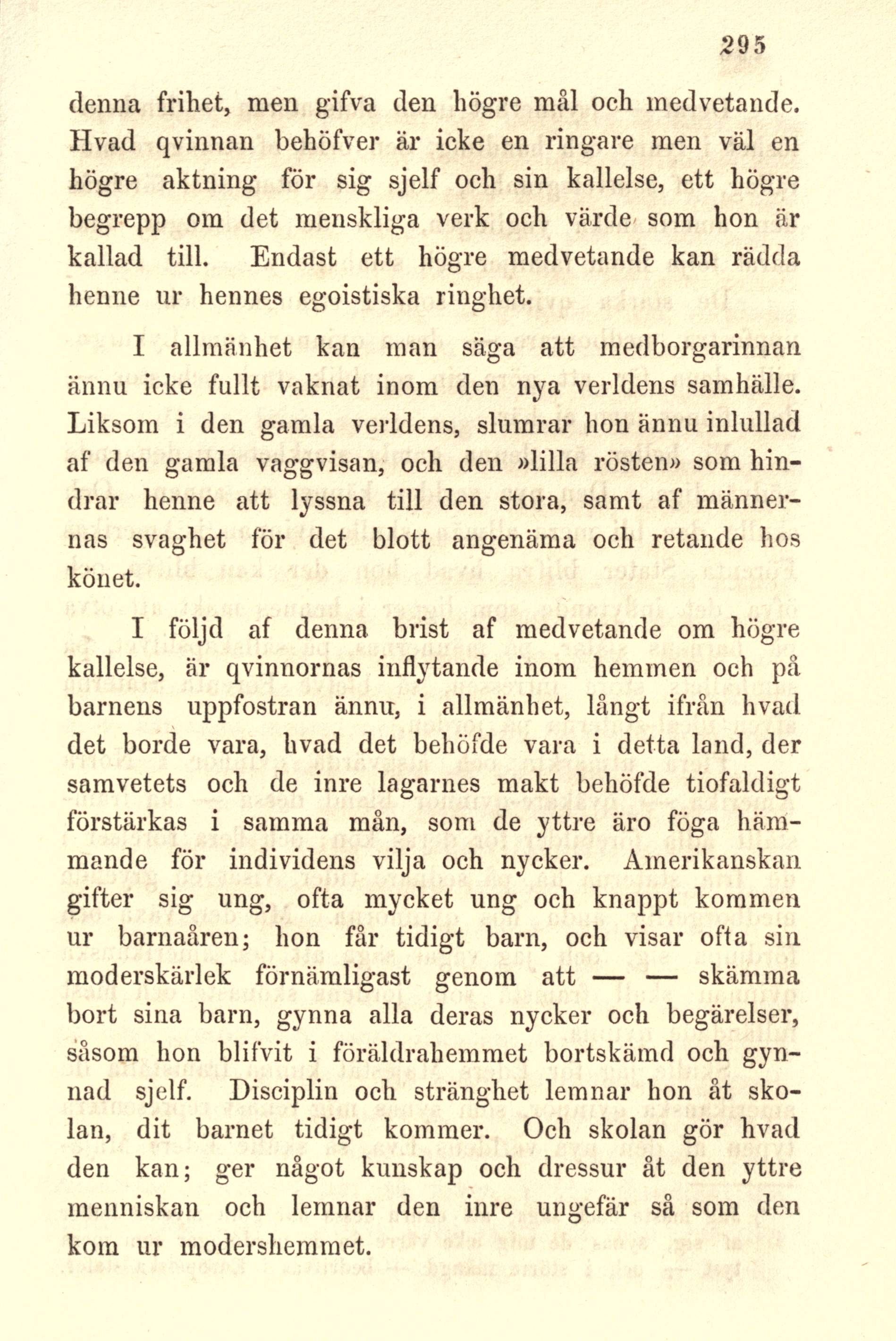 kallelse, är qvinnornas inflytande inom hemmen och på