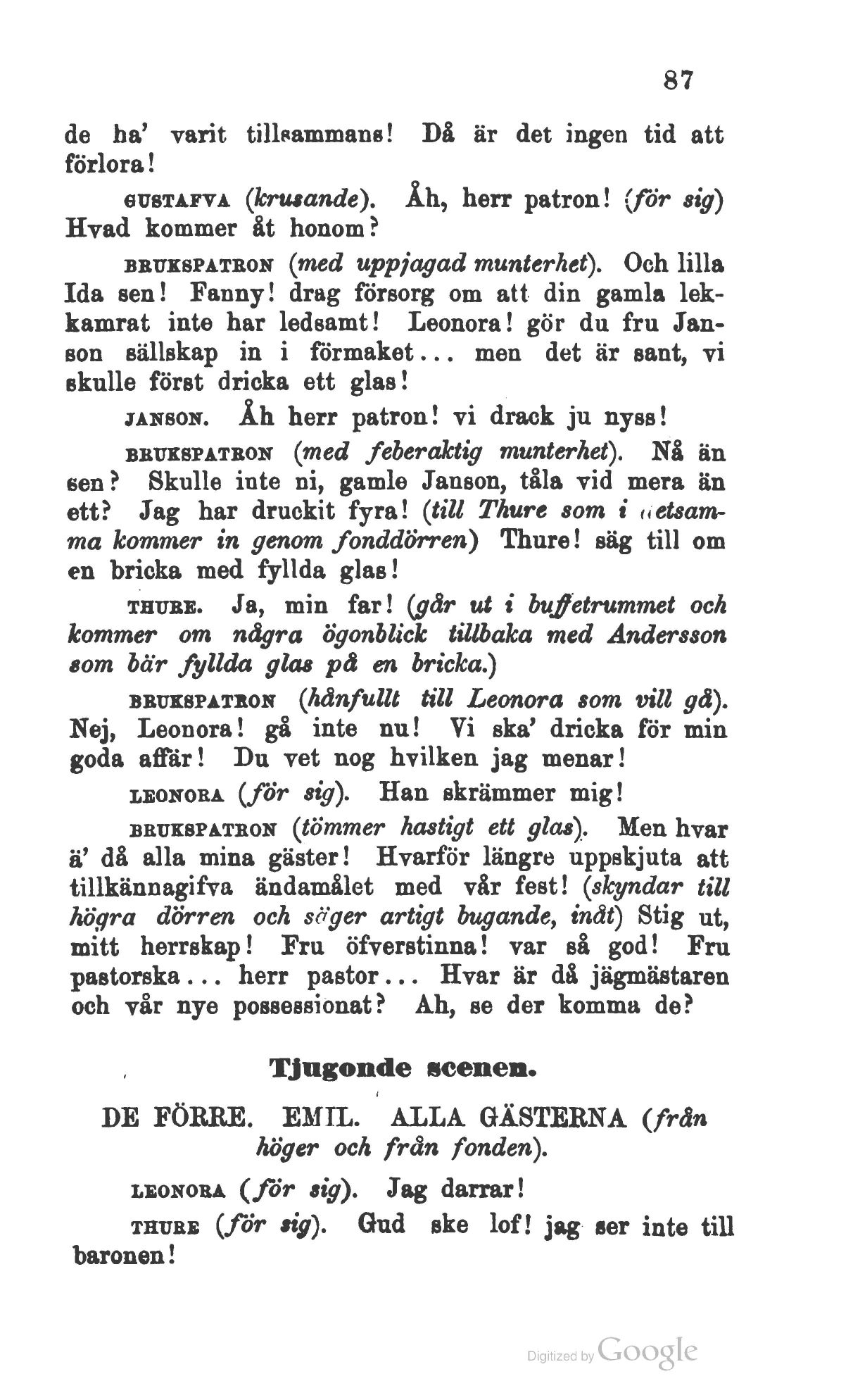 BBUKSPATRON (tömmer hastigt ett gla»). Men hvar