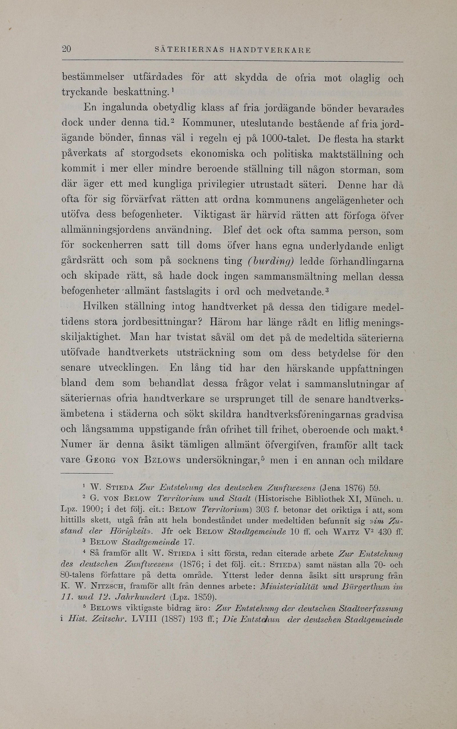 9 Belows viktigaste bidrag äro: Zur Entstehung der deutschen Stadtverfassung