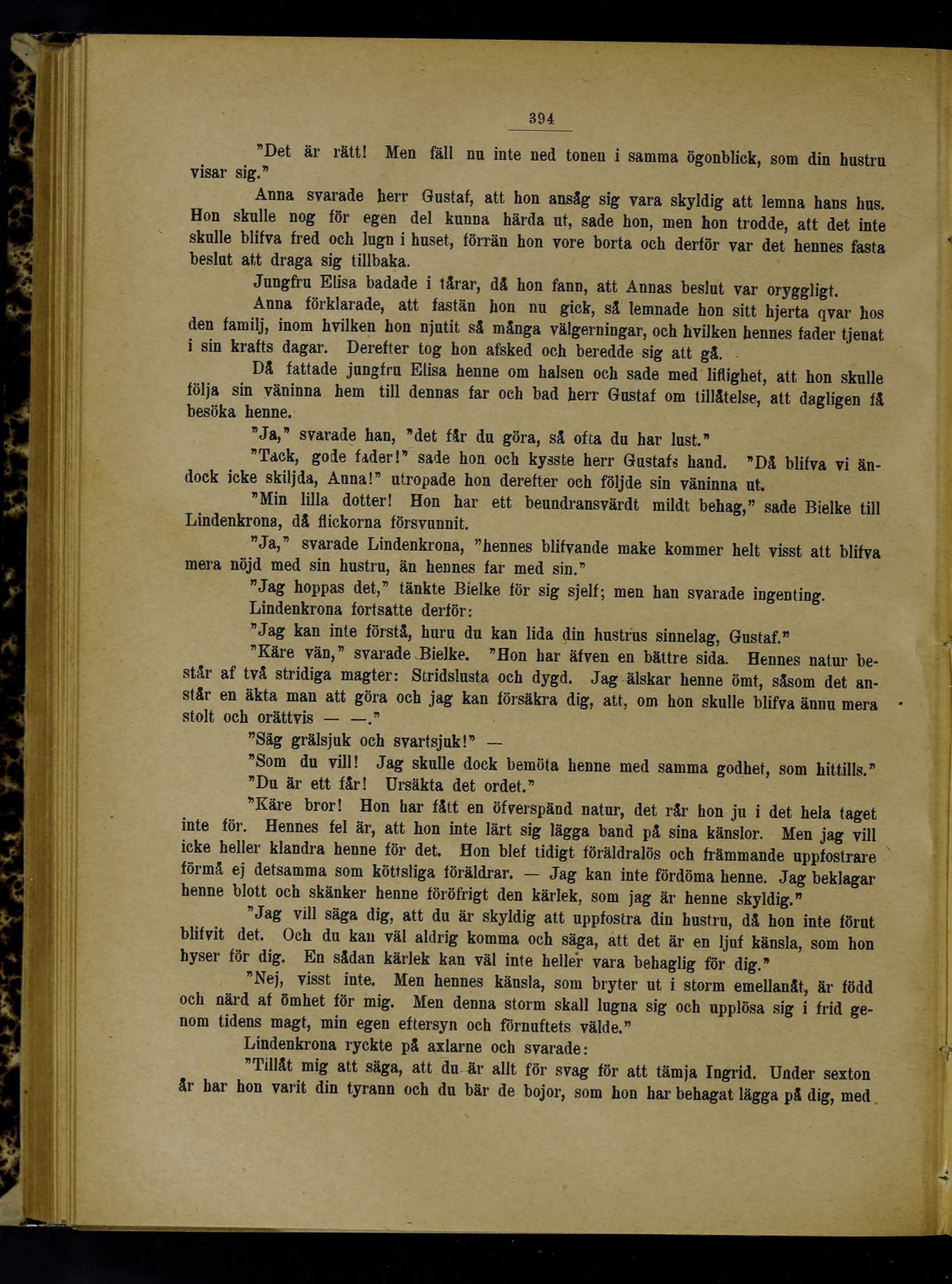 ”Käre vän,” svarade Bielke. ”Hon har äfven en bättre sida. Hennes natur be-