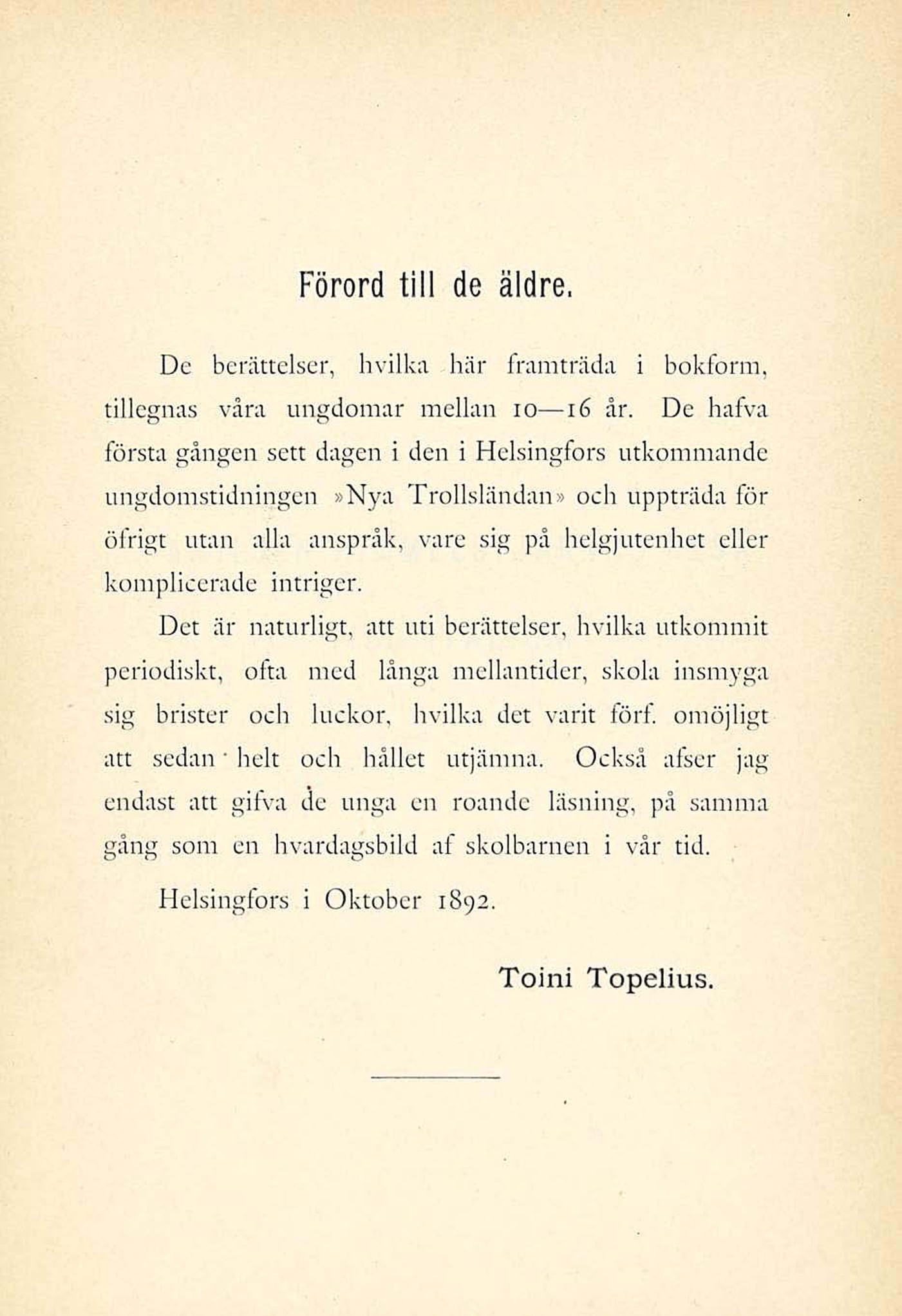 tillegnas våra ungdomar mellan 10—16 år. De hafva