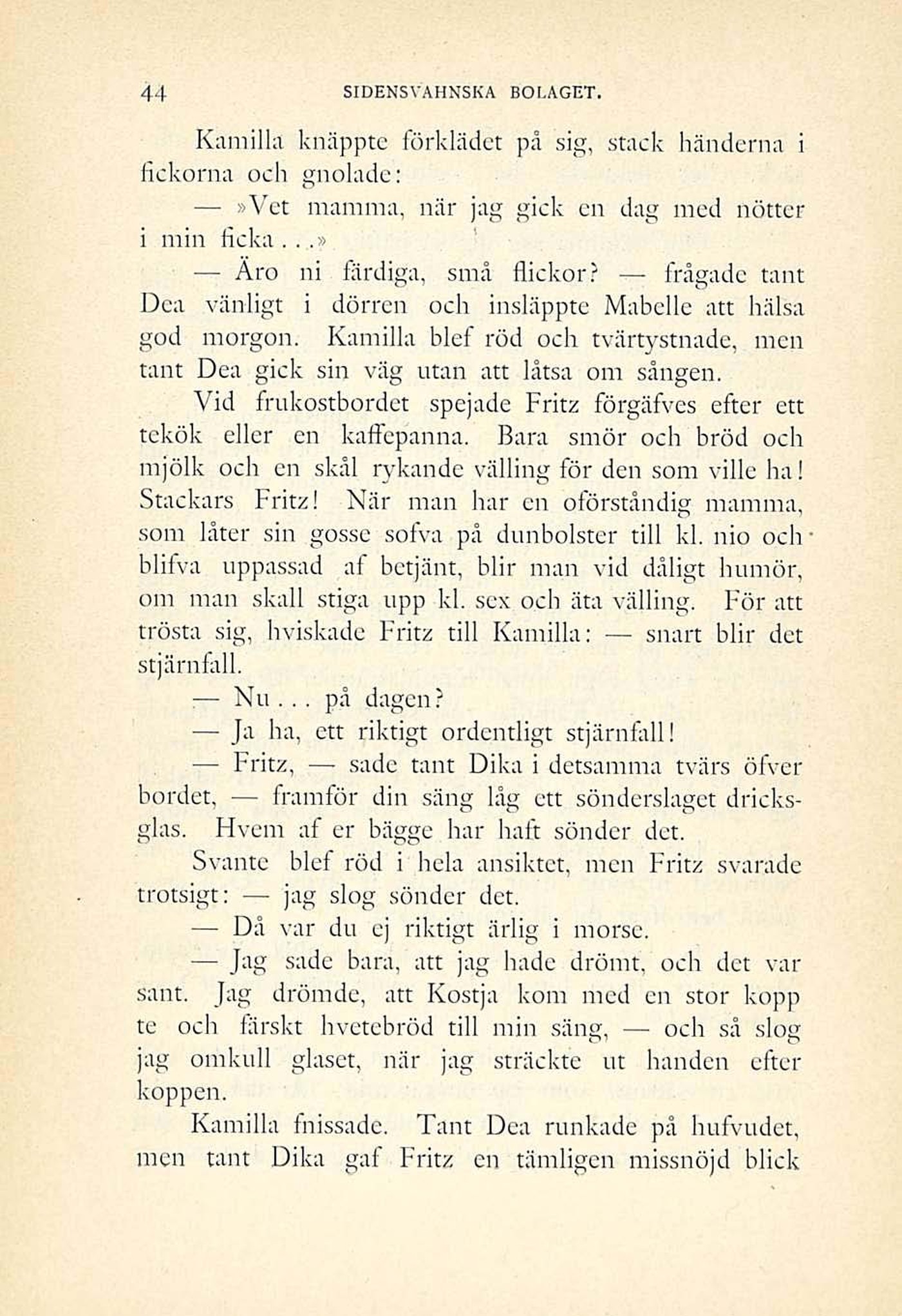 god morgon. Kamilla blef röd och tvärtystnade, men