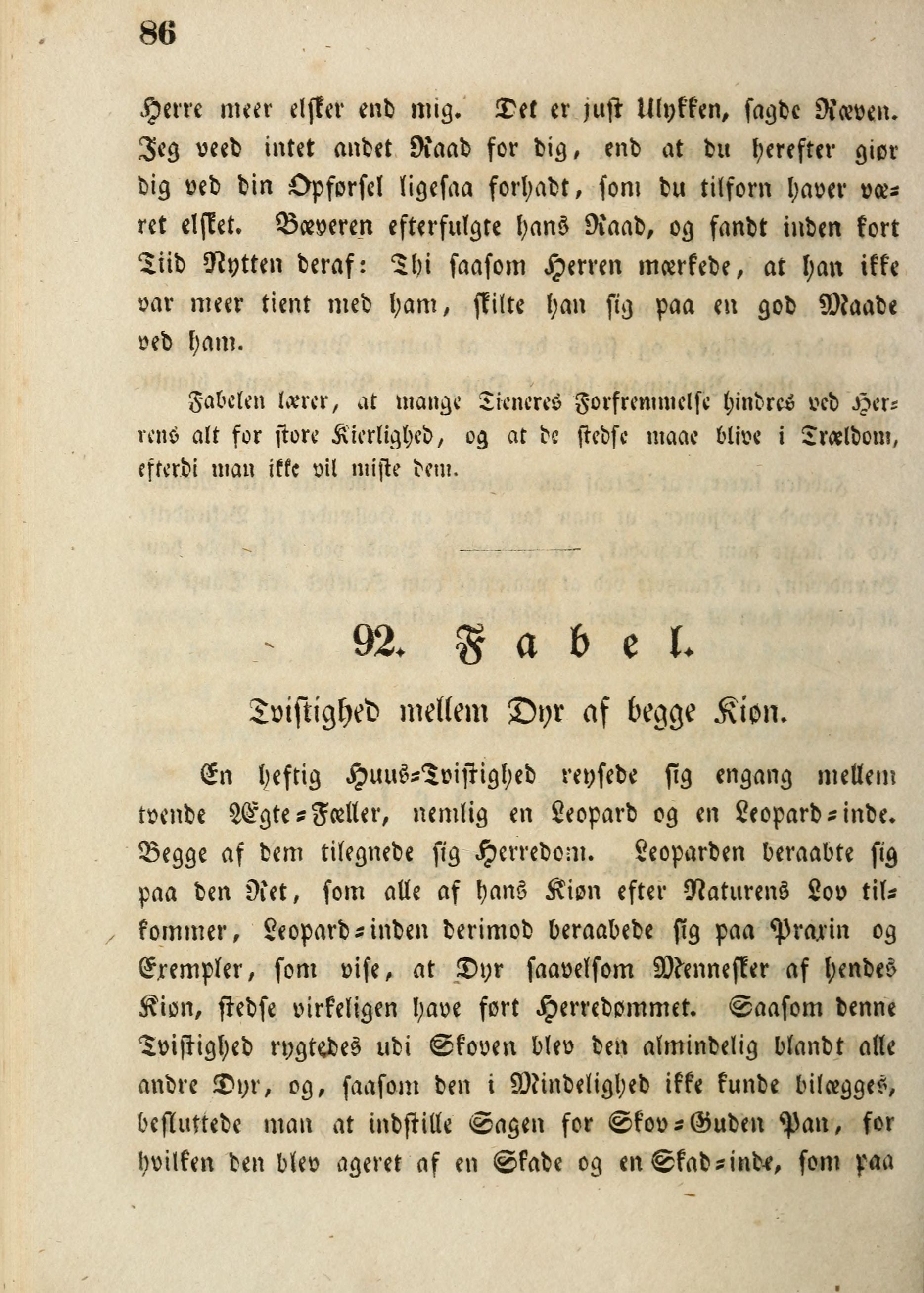 Full resolution (JPEG) - On this page / på denna sida - 91. Rævens Raad til Bæveren - 92. Tvistighed mellem Dyr af begge Kiøn