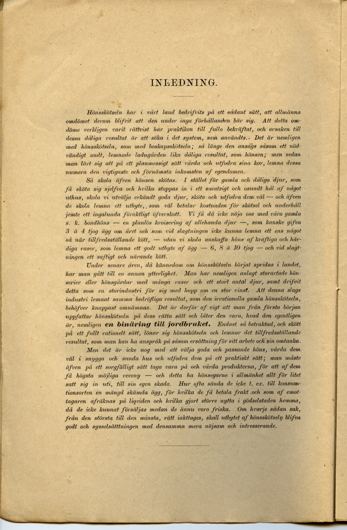 Hönsskötseln har i vårt land bedrifvits på ett sådant sätt, att allmänna