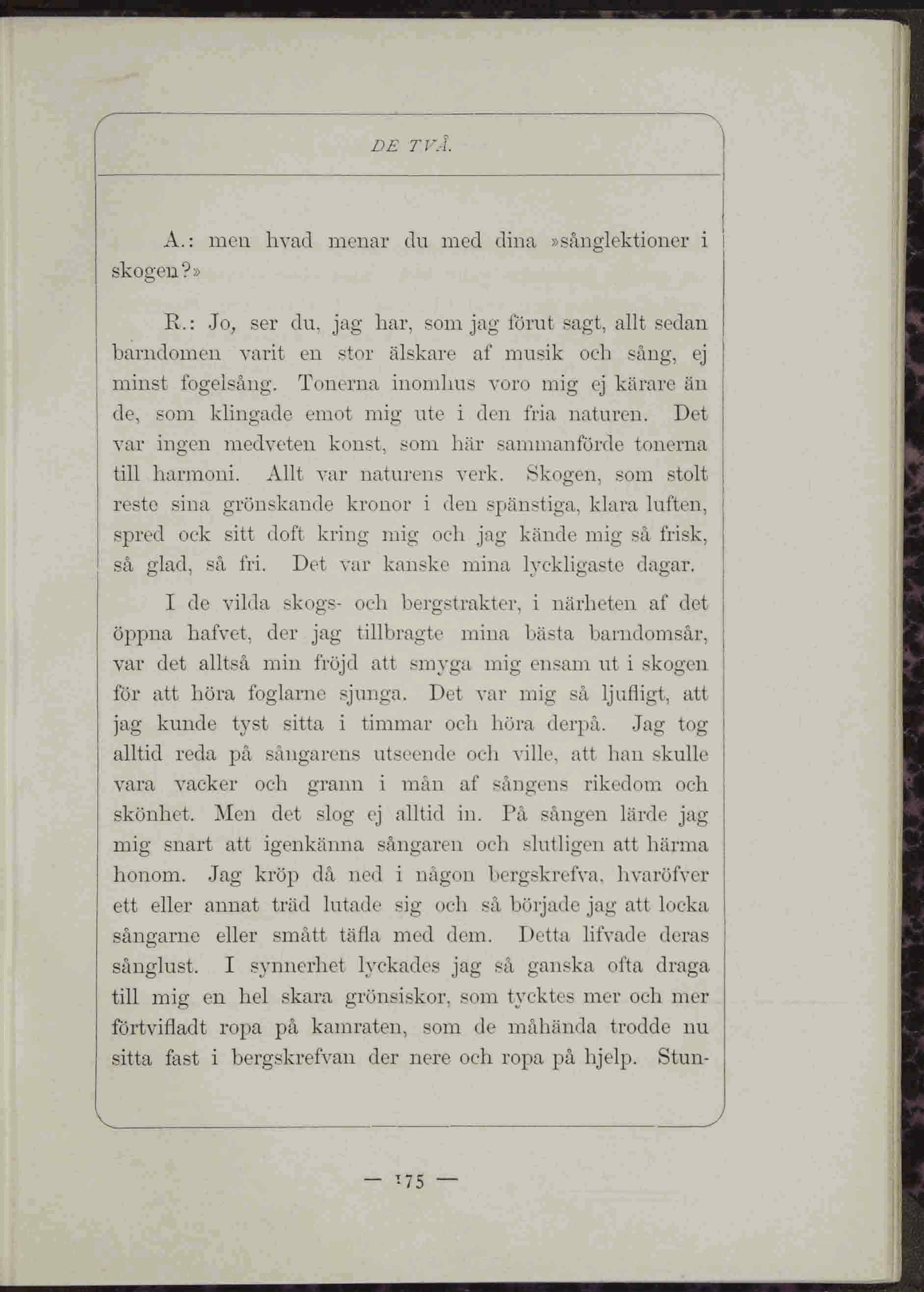 minst fogelsång. Tonerna inomhus voro mig ej kärare än