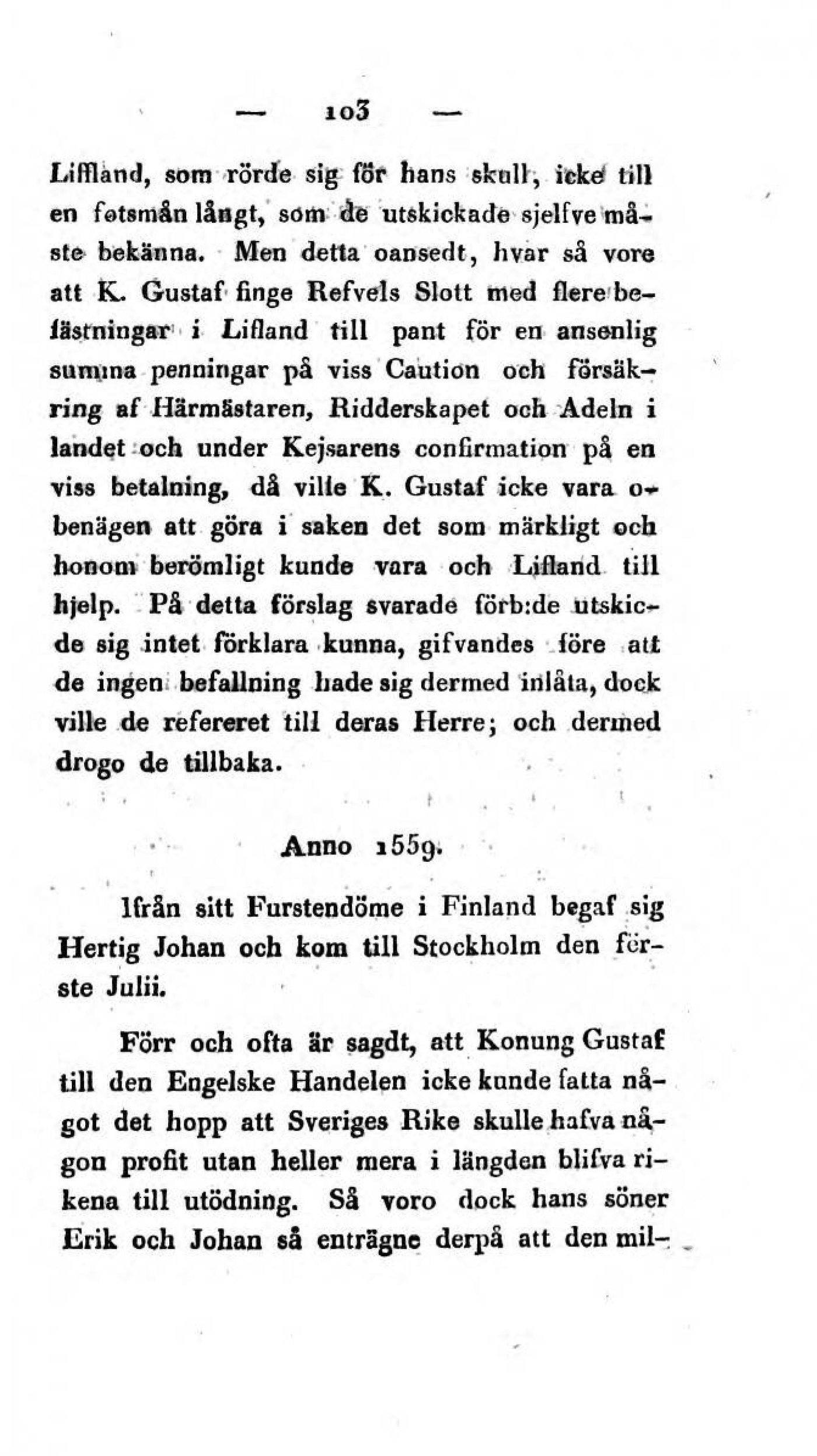 att K. Gustaf finge Refvels Slott med flere