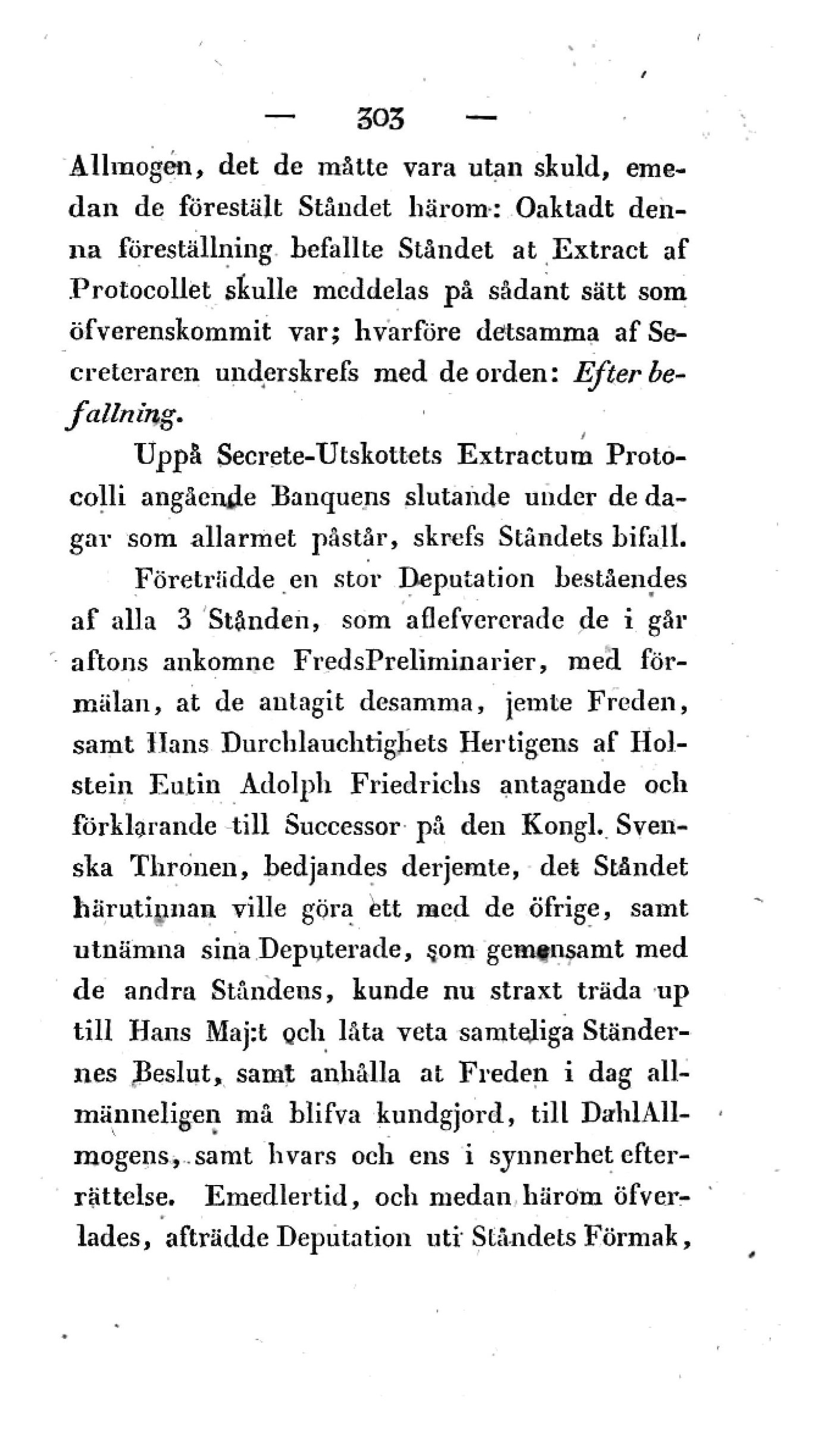 Ständer-nes Beslut, samt anhålla at Freden i dag