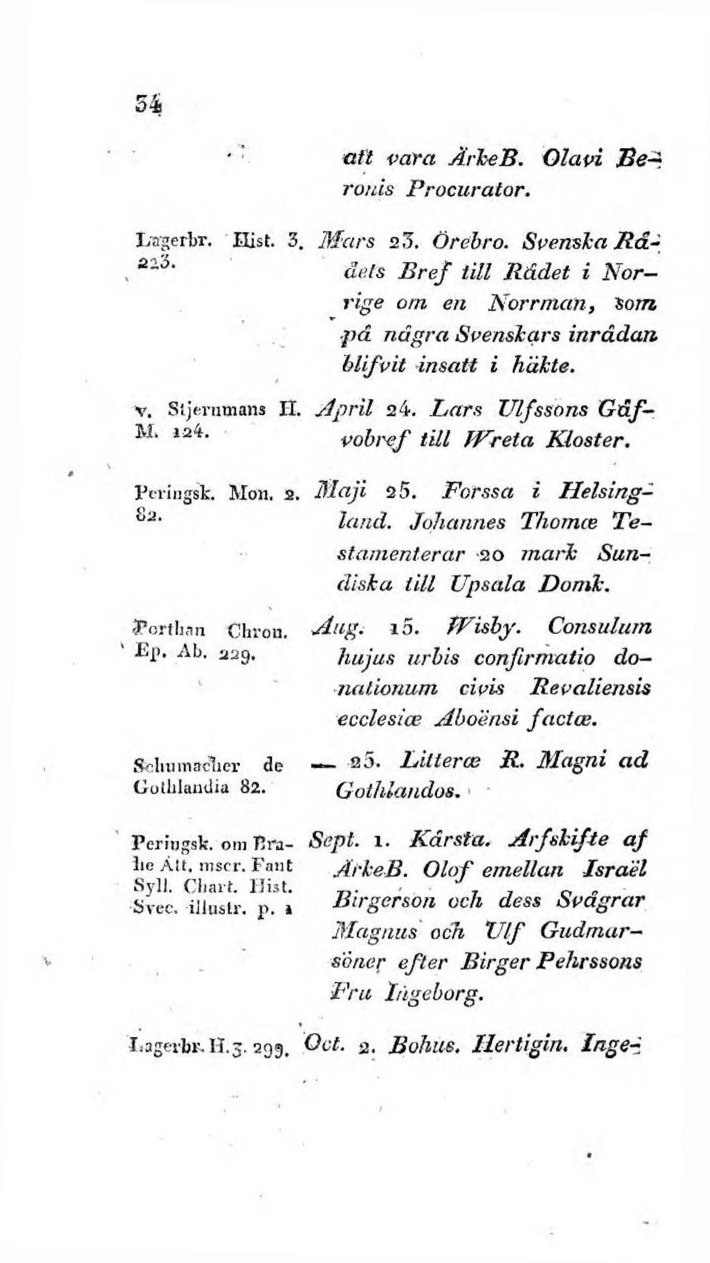 Peringsk. oui Tîra- 1 lie Ait. mscr. Faut Syil. Chart. Hist. ijvec, illustr, p, 1 Sept. 1. Kårsta. Arfskif te af ArkeB. Olof emellan Israël Birgerson och dess Svågrar Magnus och Ulf