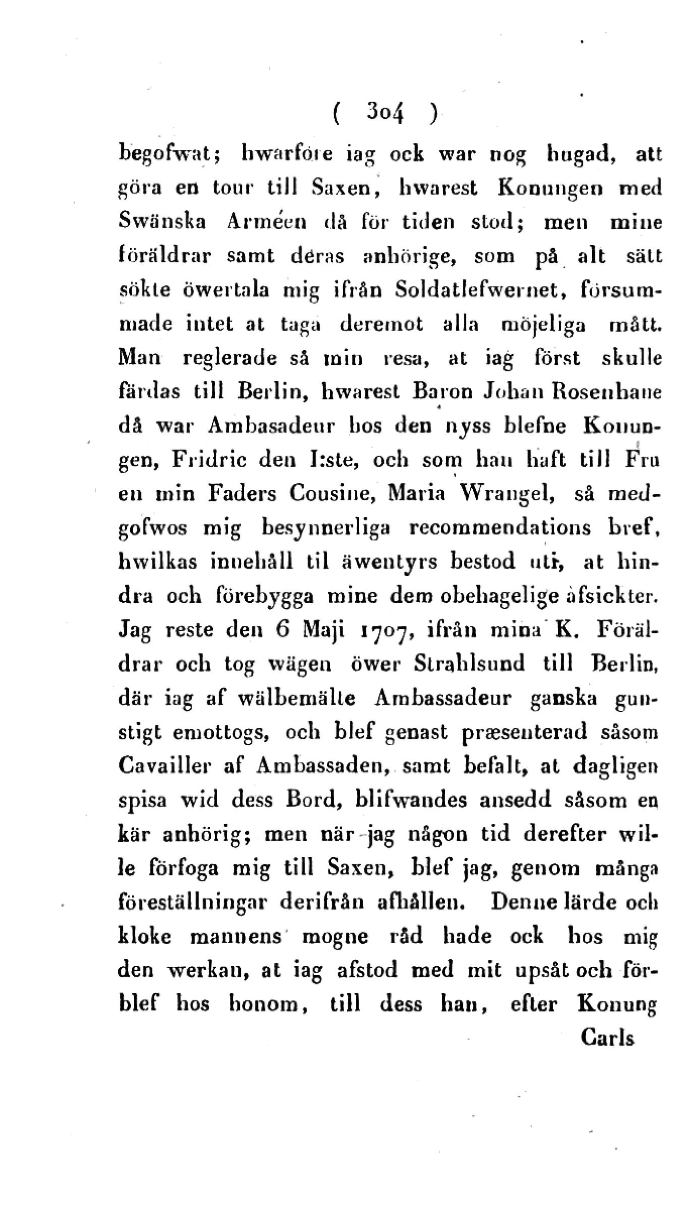 Jag reste den 6 Maji 1707, ifrån mina K. Föräl-