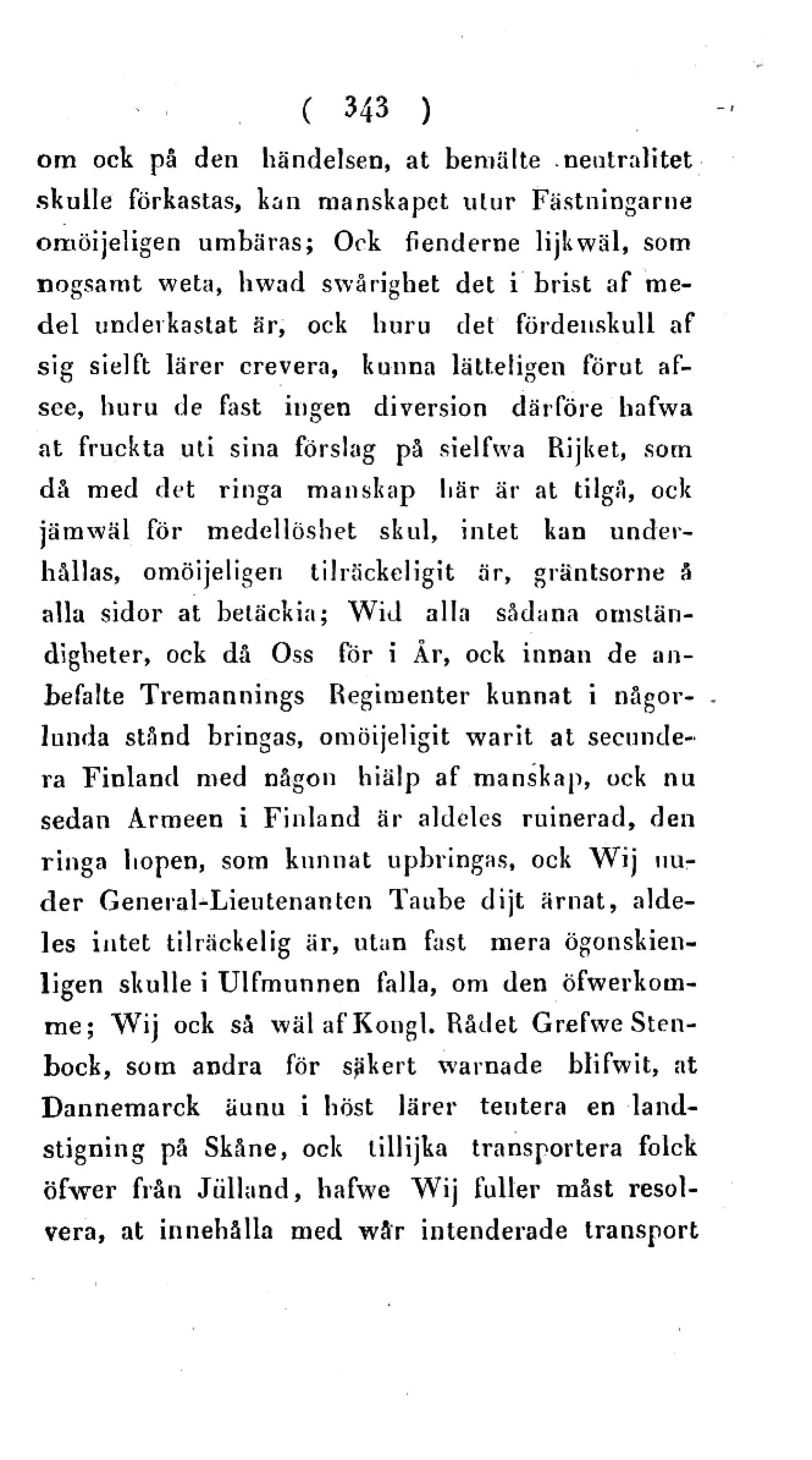 secunde-ra Finland med någon hiälp af manskap, ock nu