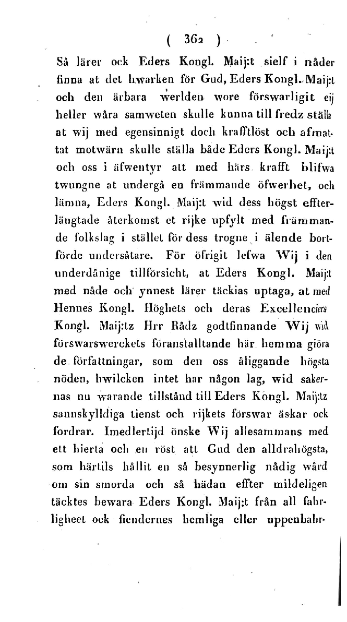 afmat-tat motwärn skulle ställa både Eders Kongl. Maij:t