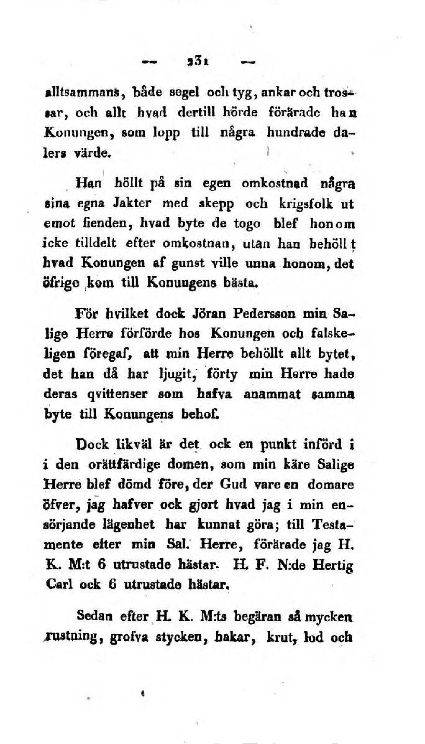 K. M:t 6 utrustade hästar. H, F. N:de Hertig