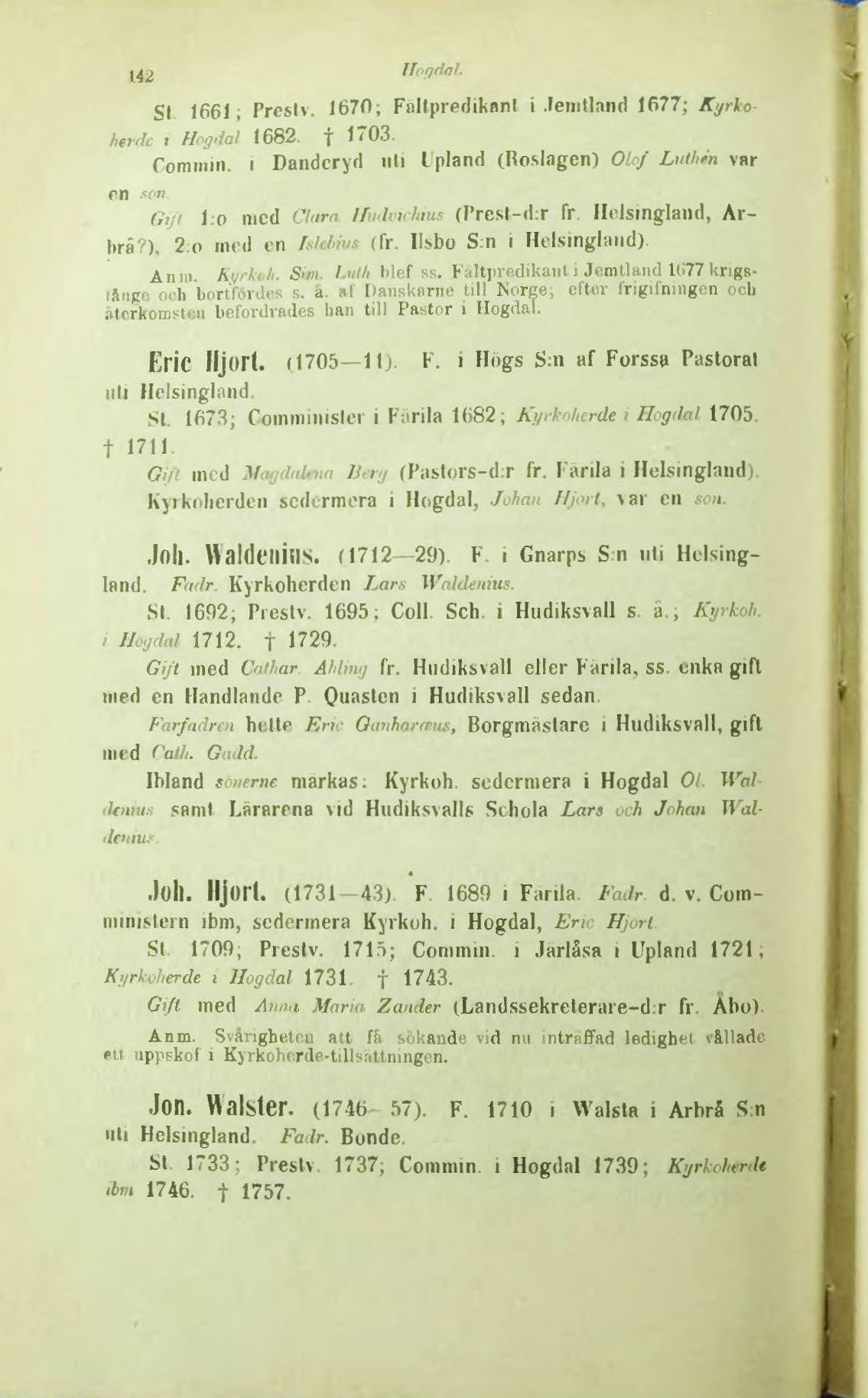 SI 1733; Preslv 1737; Commin i Högdal 1739; Kyrkoherde