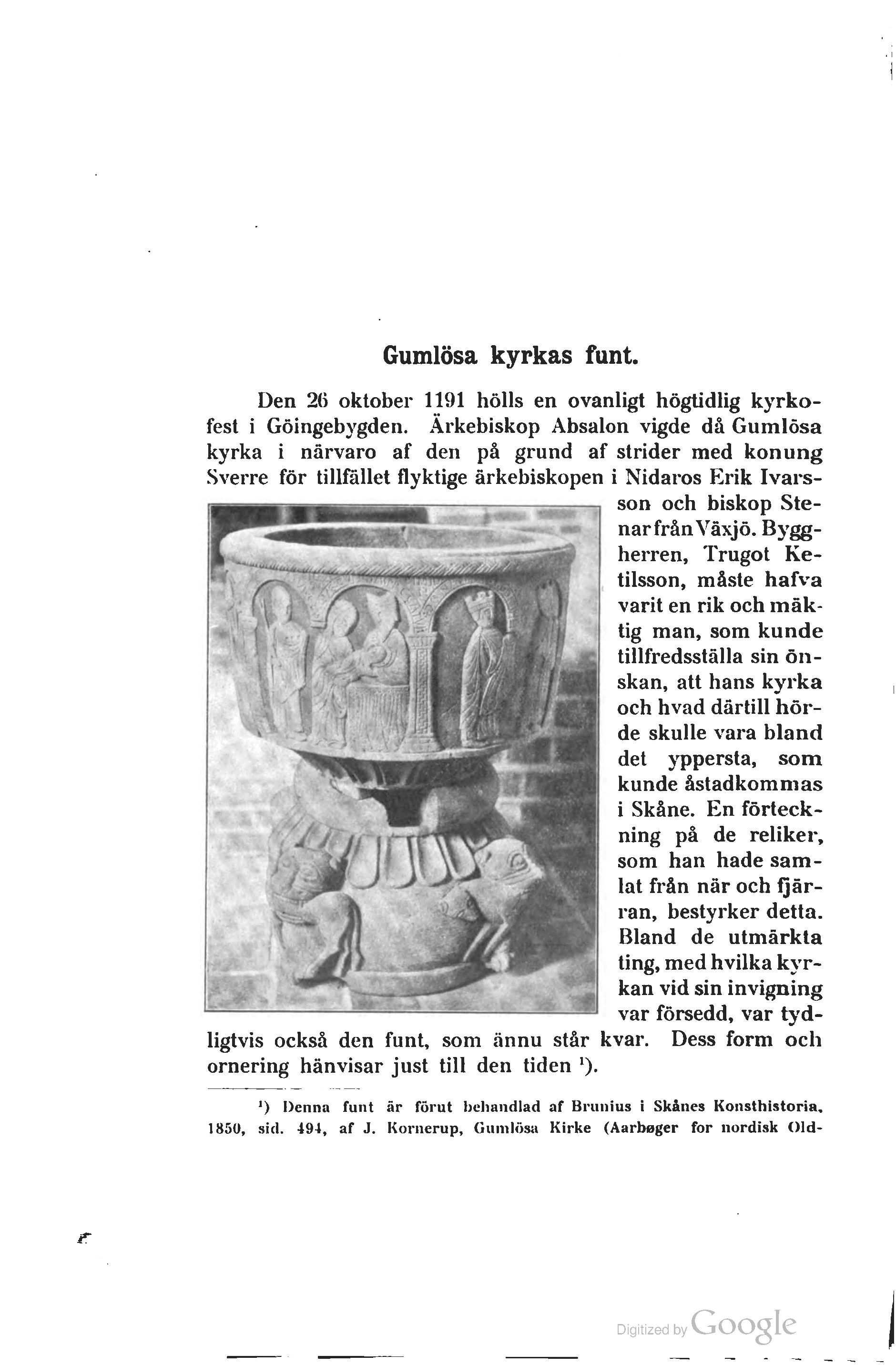 1) Denna funt är förut behandlad af Brunius i Skånes Konsthistoria,