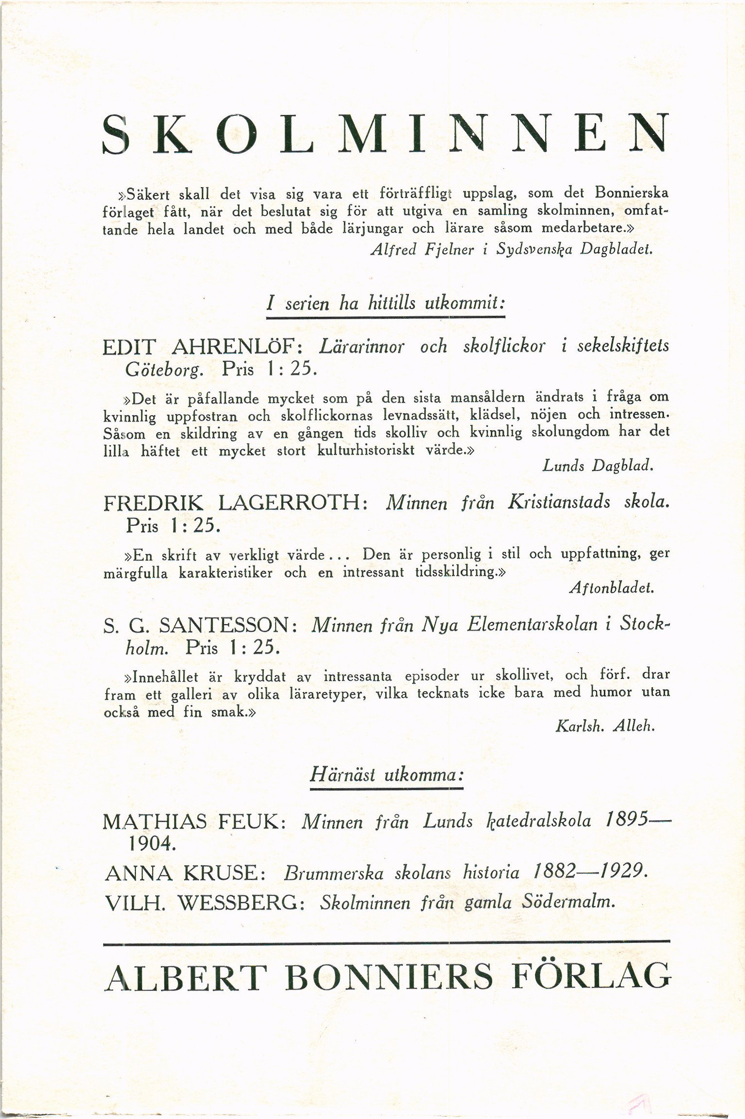 ANNA KRUSE: Brummerska skolans historia 1882—1929.