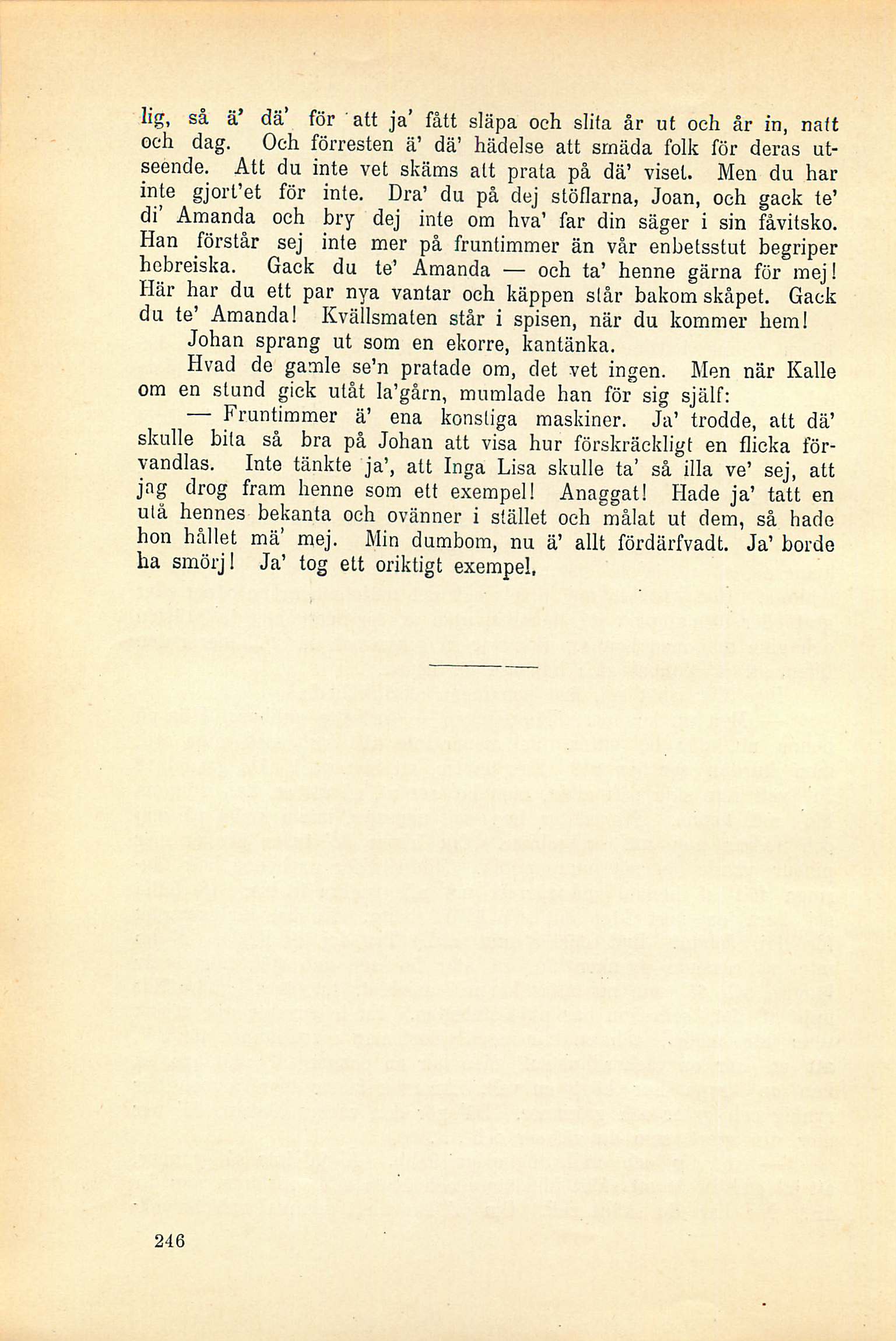 förvandlas. Inte tänkte ja’, att Inga Lisa skulle ta’ så illa ve’ sej, att