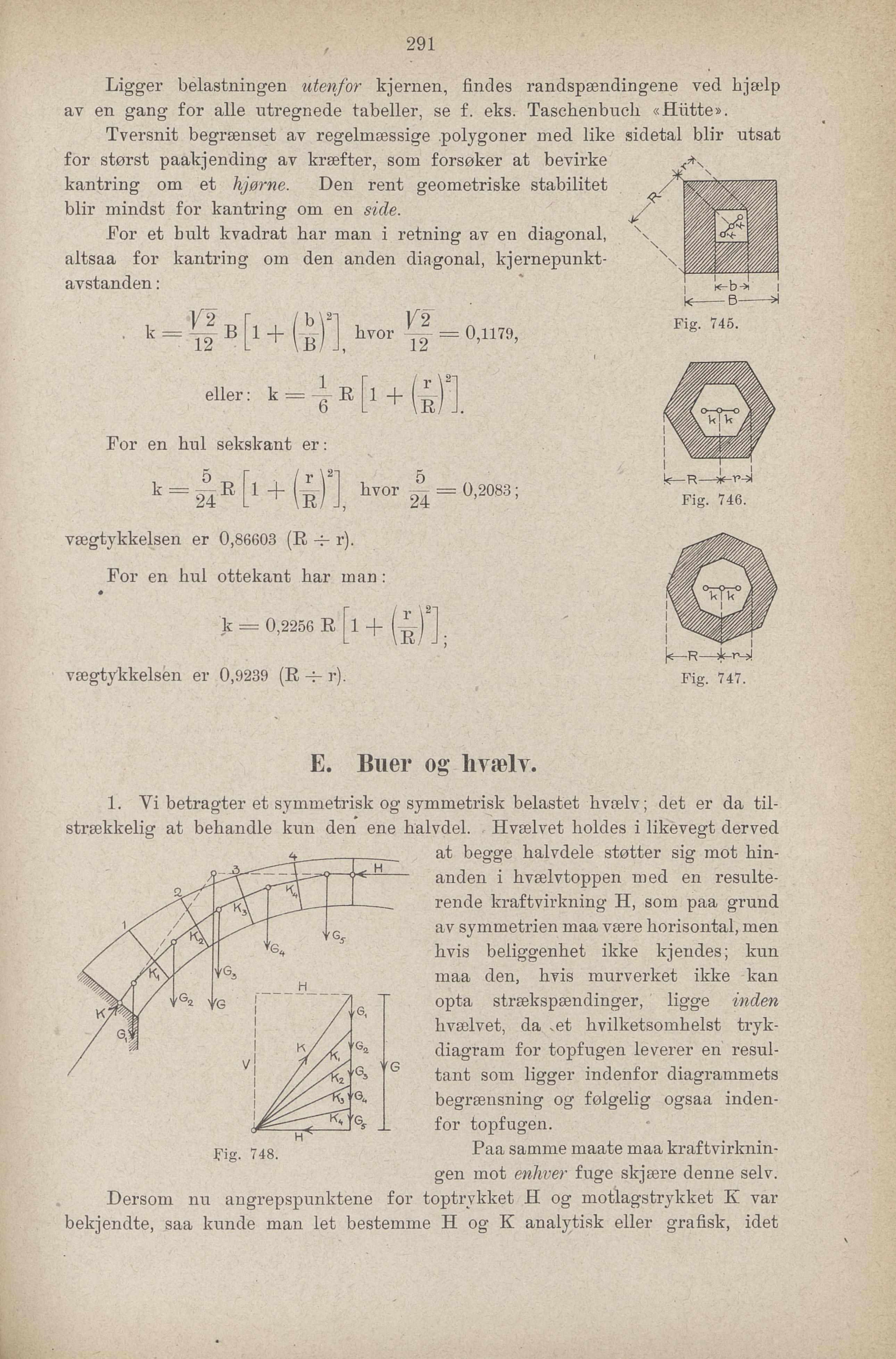 Full resolution (JPEG) - On this page / på denna sida - Første del - X. Statik. Murkonstruktioners paakjending og stabilitet. Av professor dr. ing. Hans H. Rode - D. Fritstaaende mure - E. Buer og hvælv