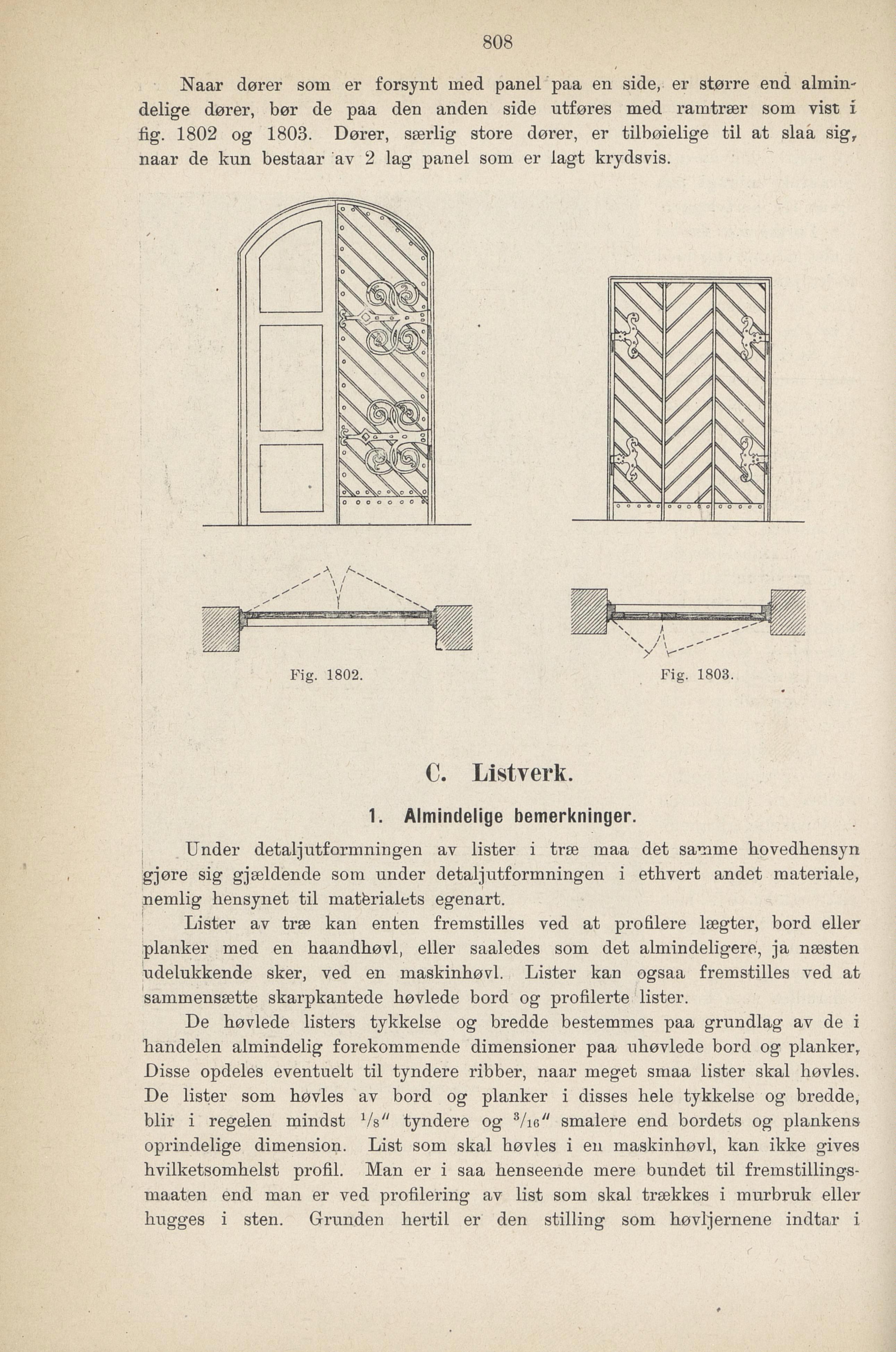 Full resolution (JPEG) - On this page / på denna sida - Anden del - VIII. Snekkerier - B. Dører og porter - 8. Porter og specielle utvendige dører - C. Listverk - 1. Almindelige bemerkninger