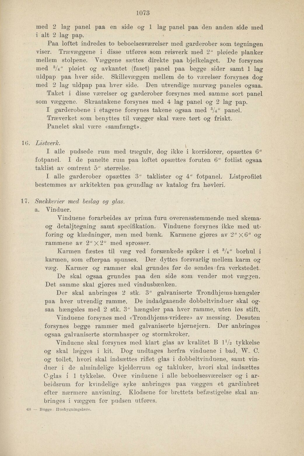 Full resolution (JPEG) - On this page / på denna sida - Tredje del. Bygningsadministration - XII. Eksempler paa arbeidsbeskrivelse og overslag - 1. Eksempel paa arbeidsbeskrivelse og masseberegning med overslag til hus av teglsten