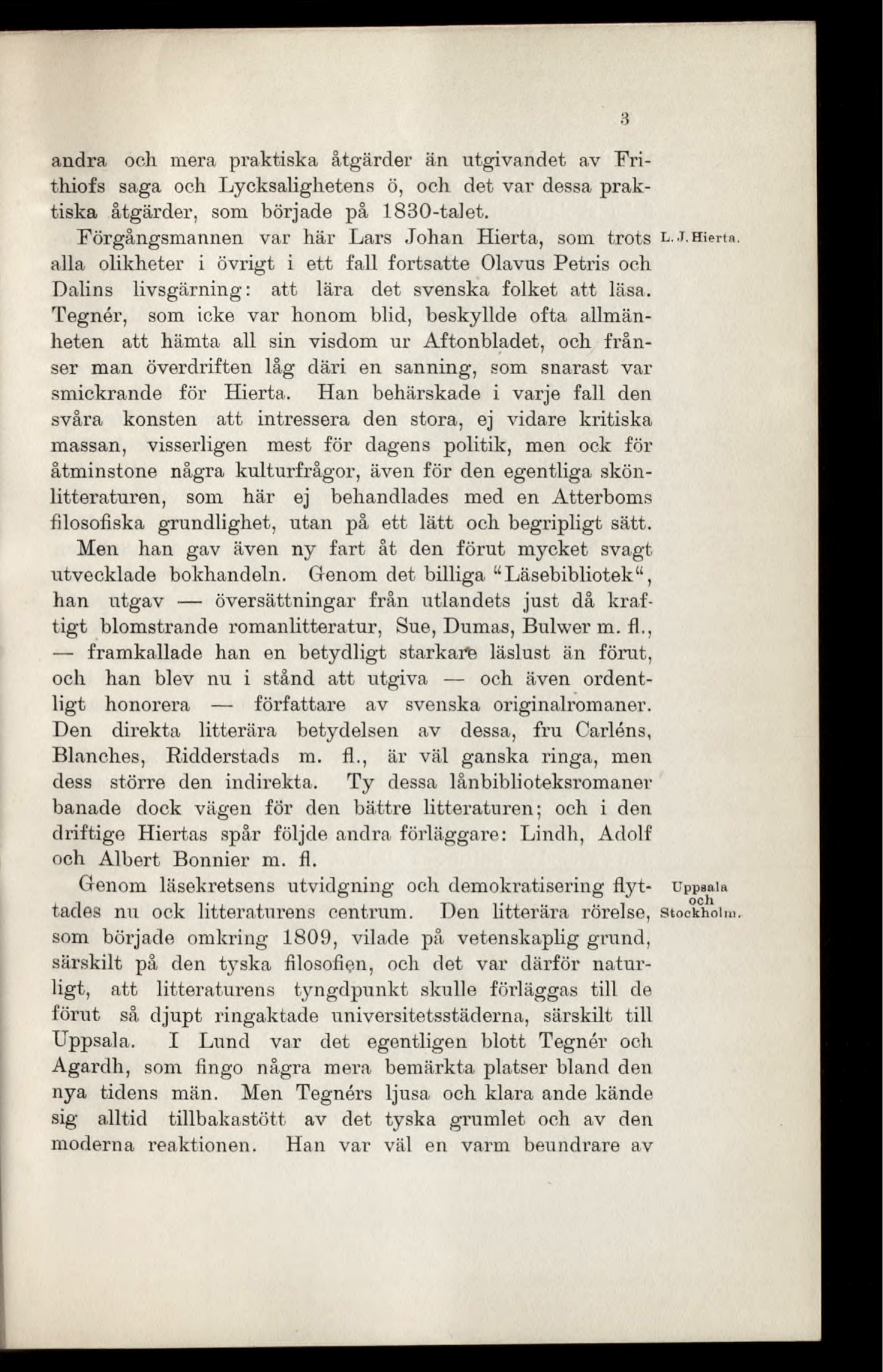 Uppsala. I Lund var det egentligen blott Tegnér och