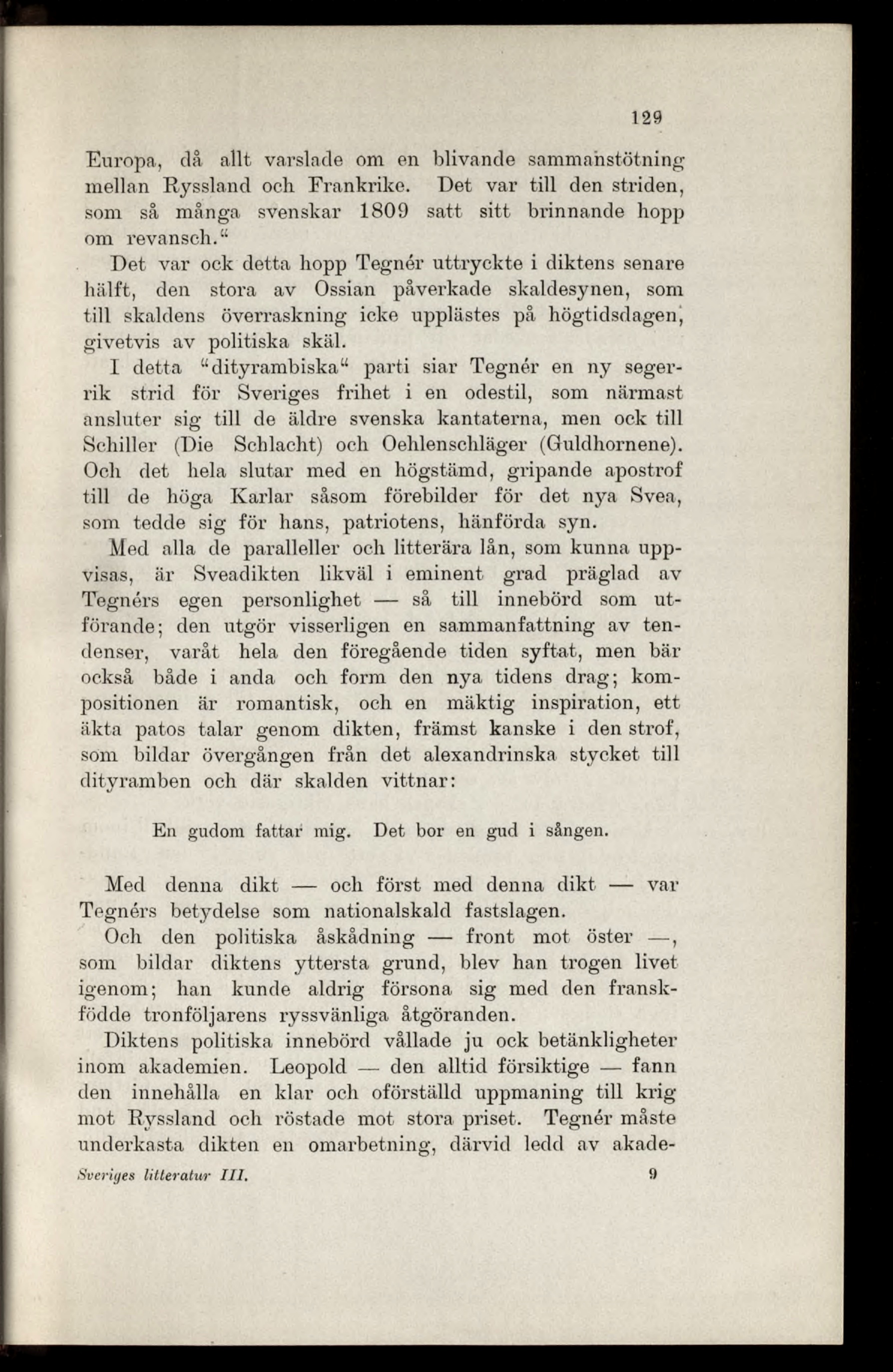 I detta “dityrambiska“ parti siar Tegnér en ny