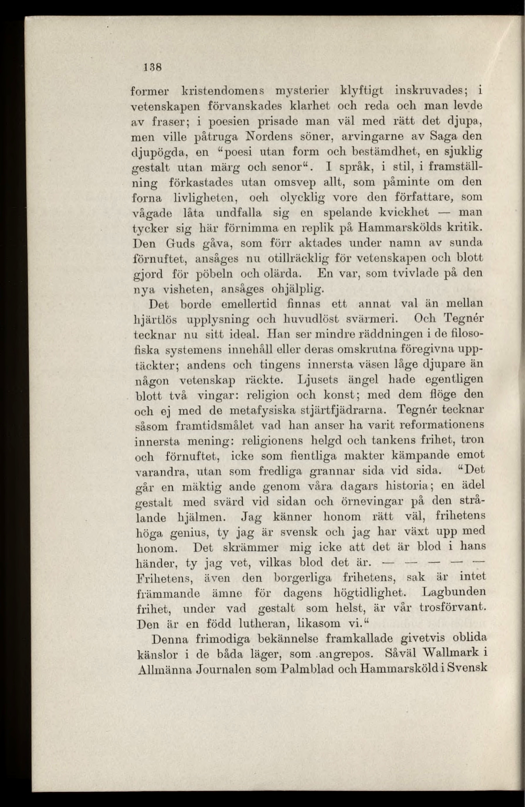 och ej med de metafysiska stjärtfjädrarna. Tegnér tecknar