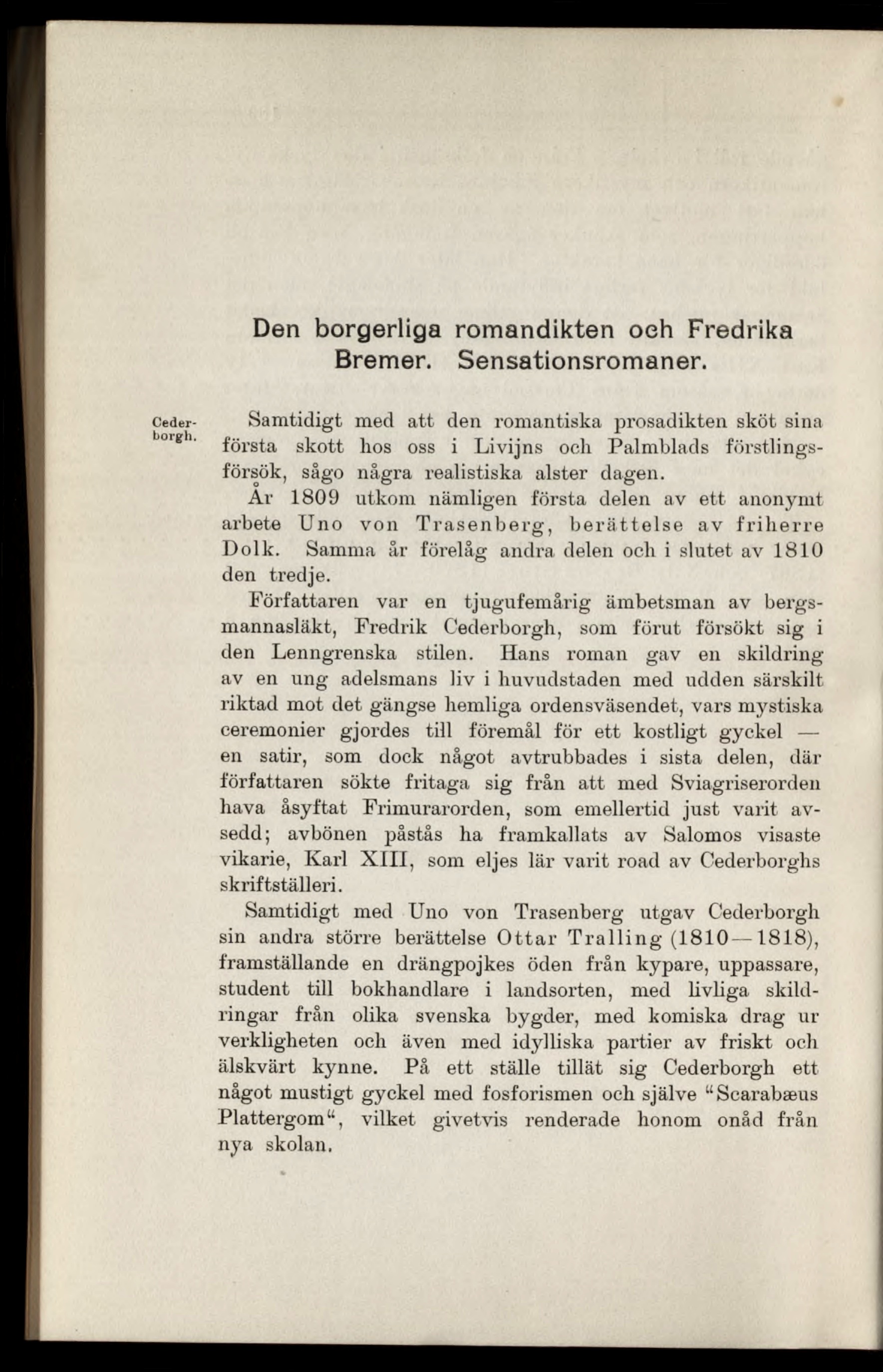 älskvärt kynne. På ett ställe tillät sig Cederborgh ett
