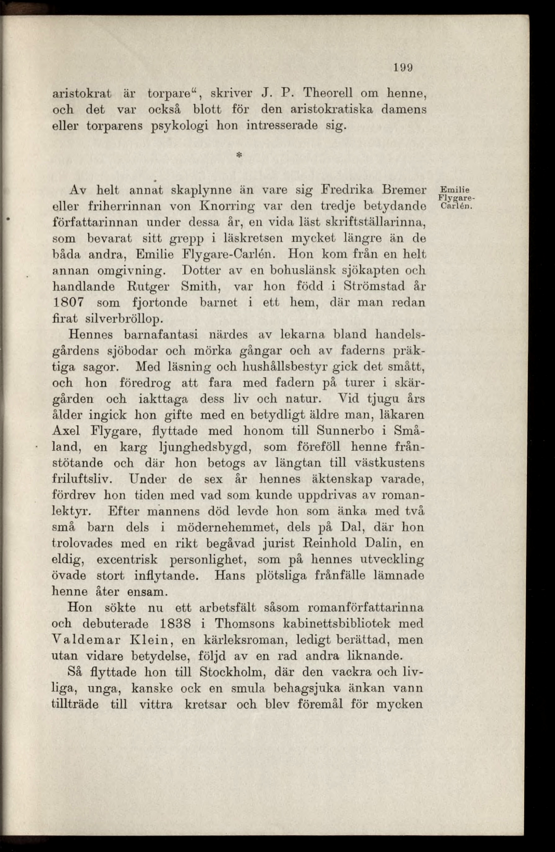 båda andra, Emilie Flygare-Carlén. Hon kom från en helt